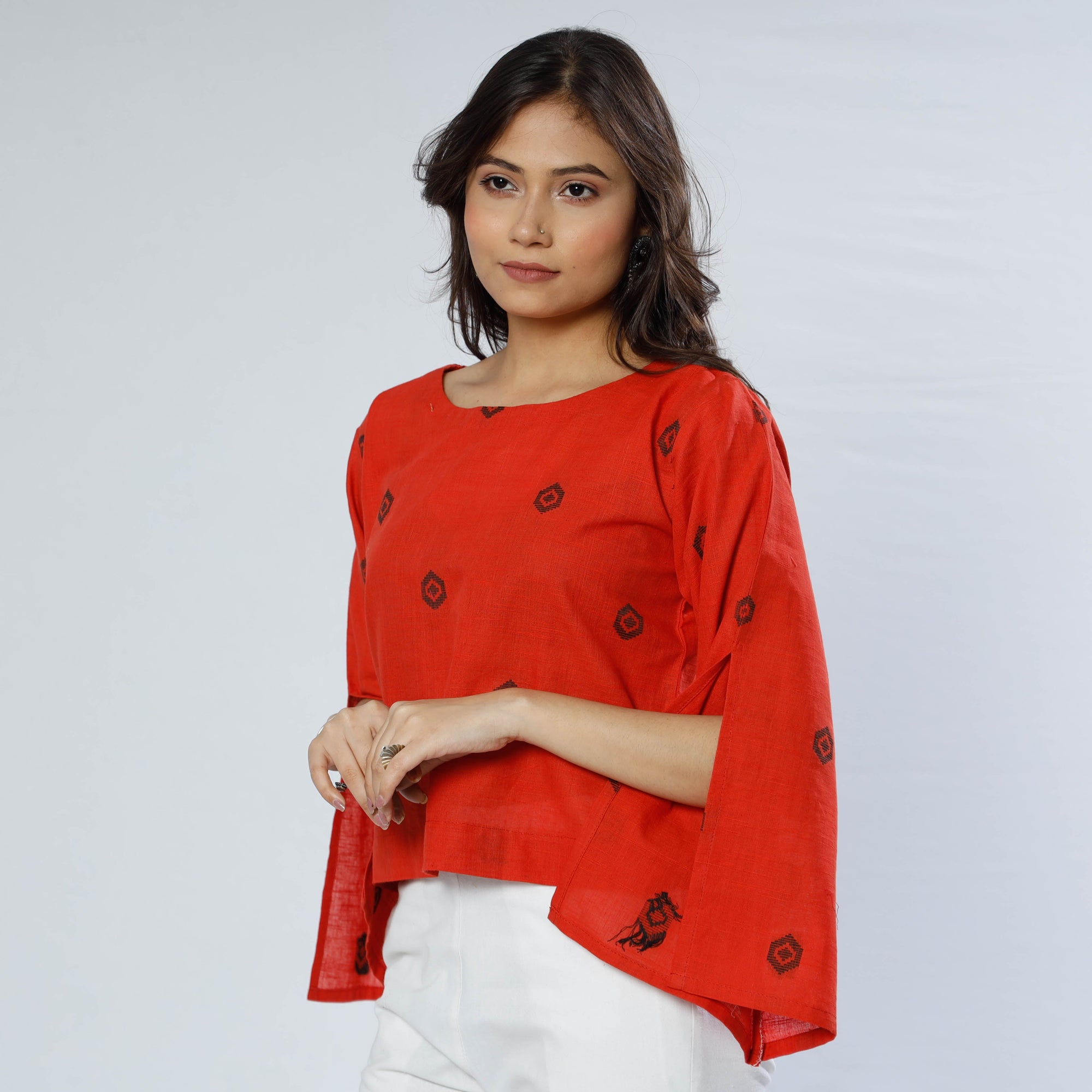 Look and feel beautiful in this uniquely designed orange pre-washed south cotton jacquard crop top. This crop top makes you comfortable with ease all day long. This crop top is perfect for your daily outing and for a special occasion.