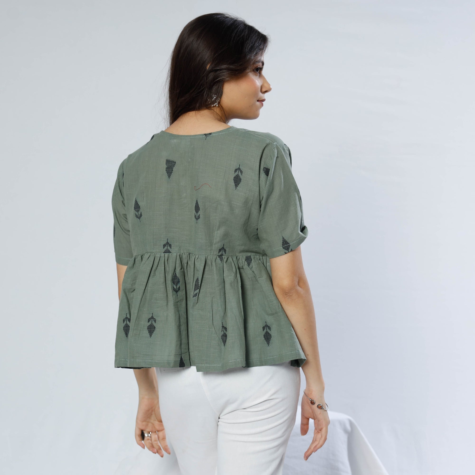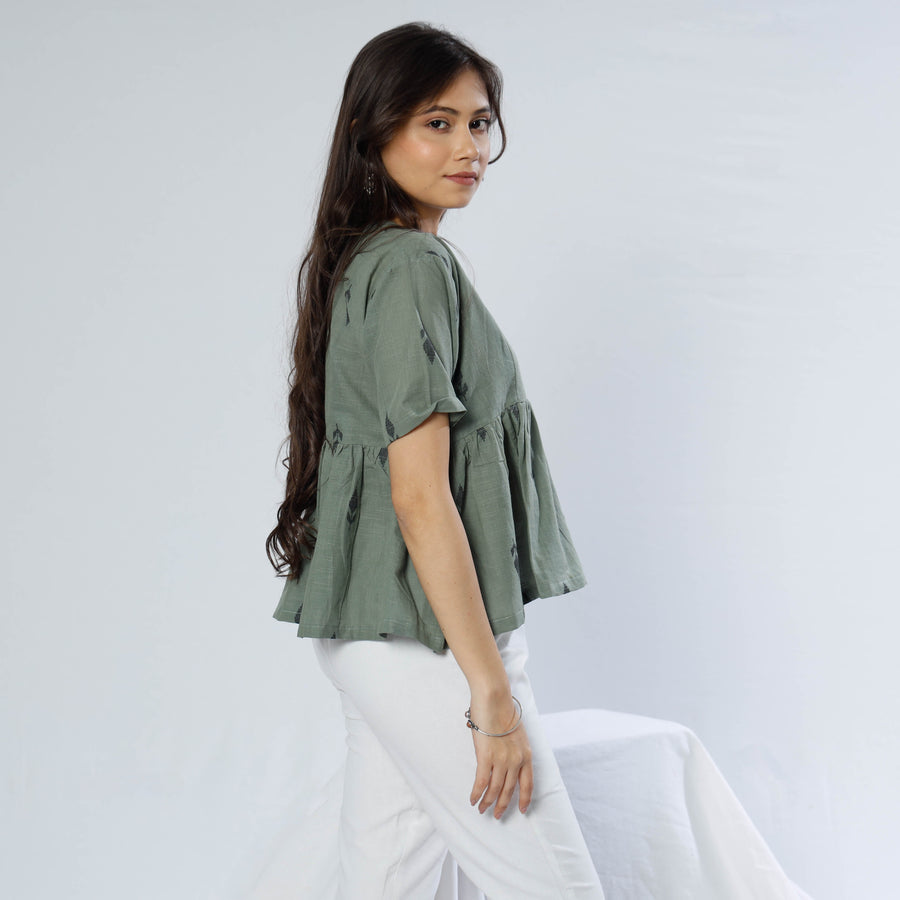 Look and feel beautiful in this uniquely designedpre-washed south cotton jacquard crop top. This crop top makes you comfortable with ease all day long. This crop top is perfect for your daily outing and for a special occasion.