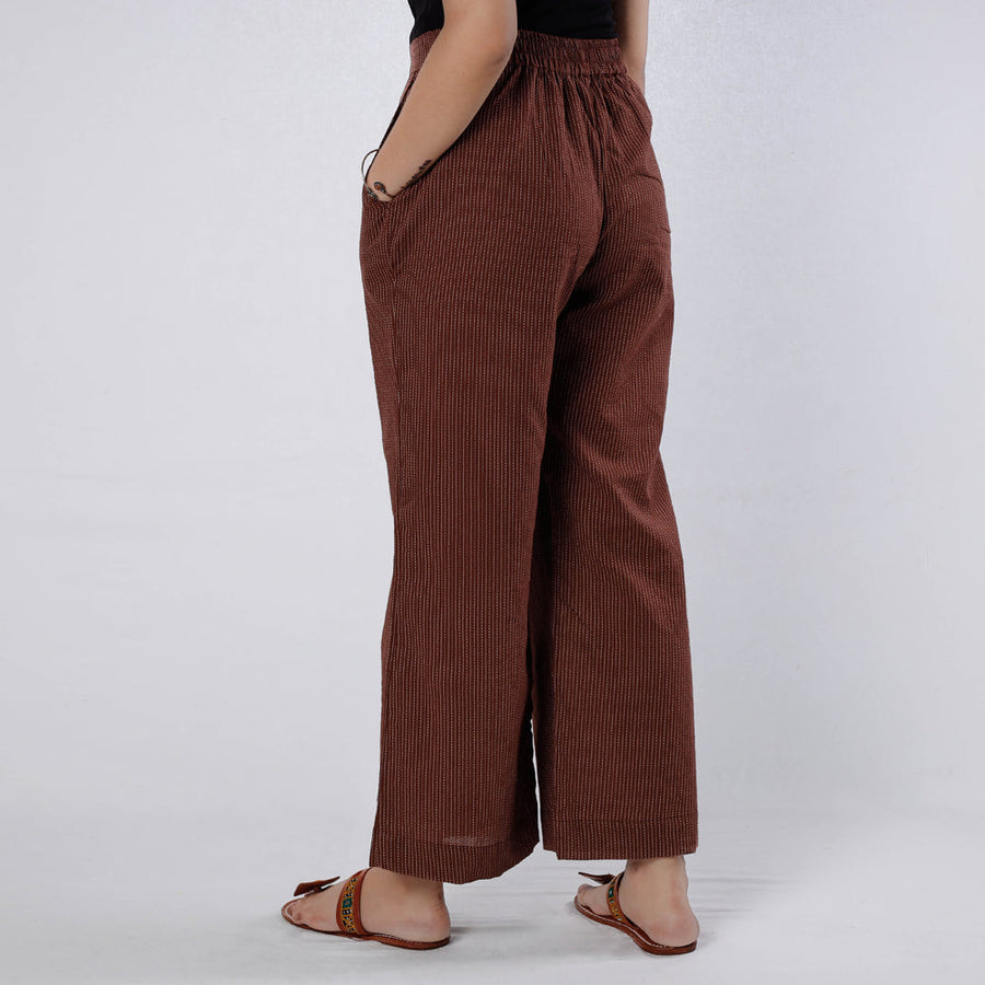 Feel and look beautiful in this running stitch cotton elasticated casual palazzo with side pockets, made of fine quality cotton. This cotton palazzo makes you feel comfortable and stylish all day long. This palazzo is perfect for your daily outings.