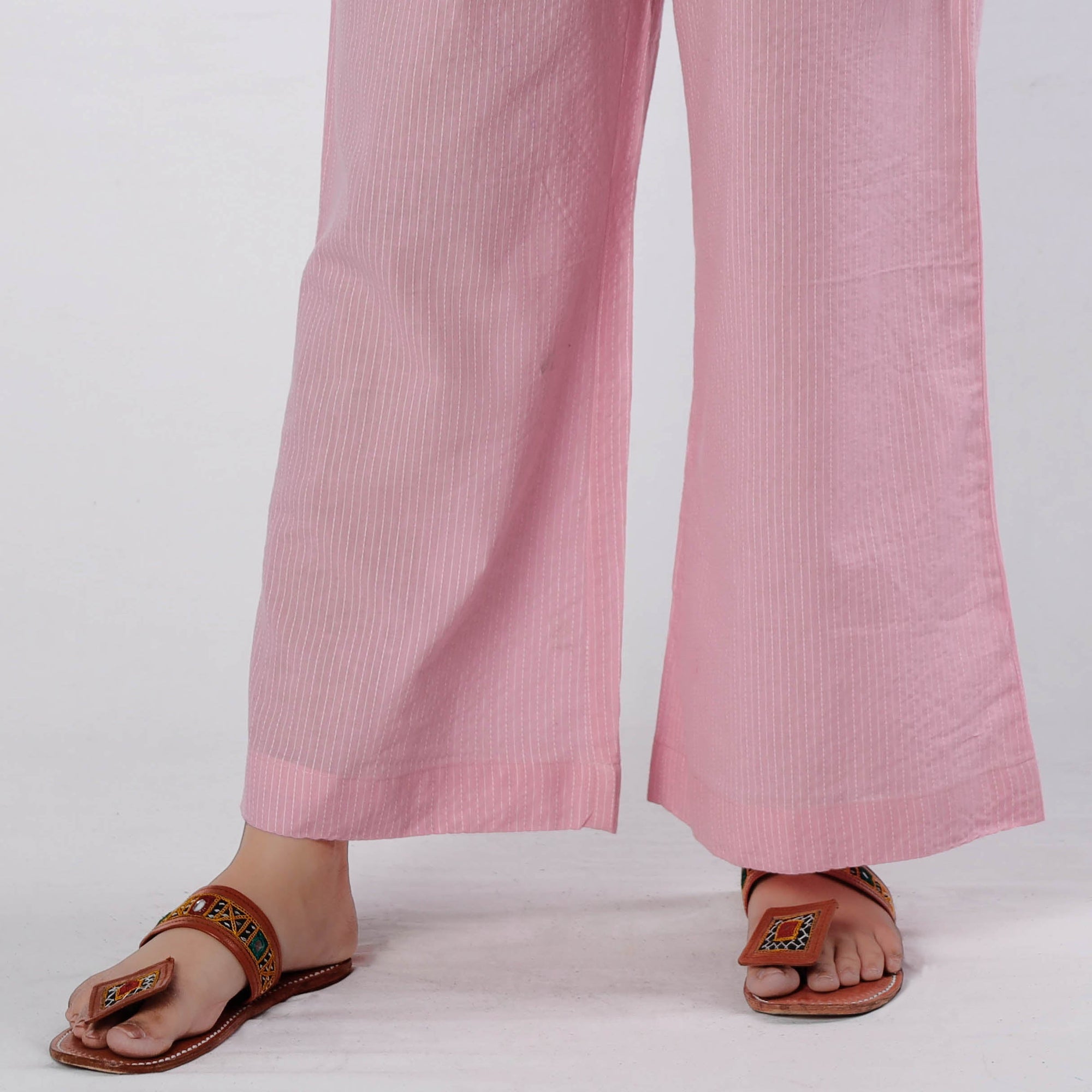 | Material | Feel and look beautiful in this running stitch cotton elasticated casual palazzo with side pockets, made of fine quality cotton. This cotton palazzo makes you feel comfortable and stylish all day long. This palazzo is perfect for your daily outings. |