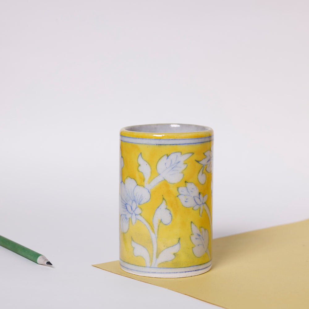 Yellow - Original Blue Pottery Ceramic Pen Stand (2.5 x 2.5 in)