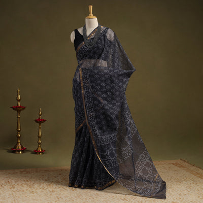 Black - Lucknowi Chikankari Hand Work Pochampally Ikat Unstitched Kurta Material (2.5M) 46