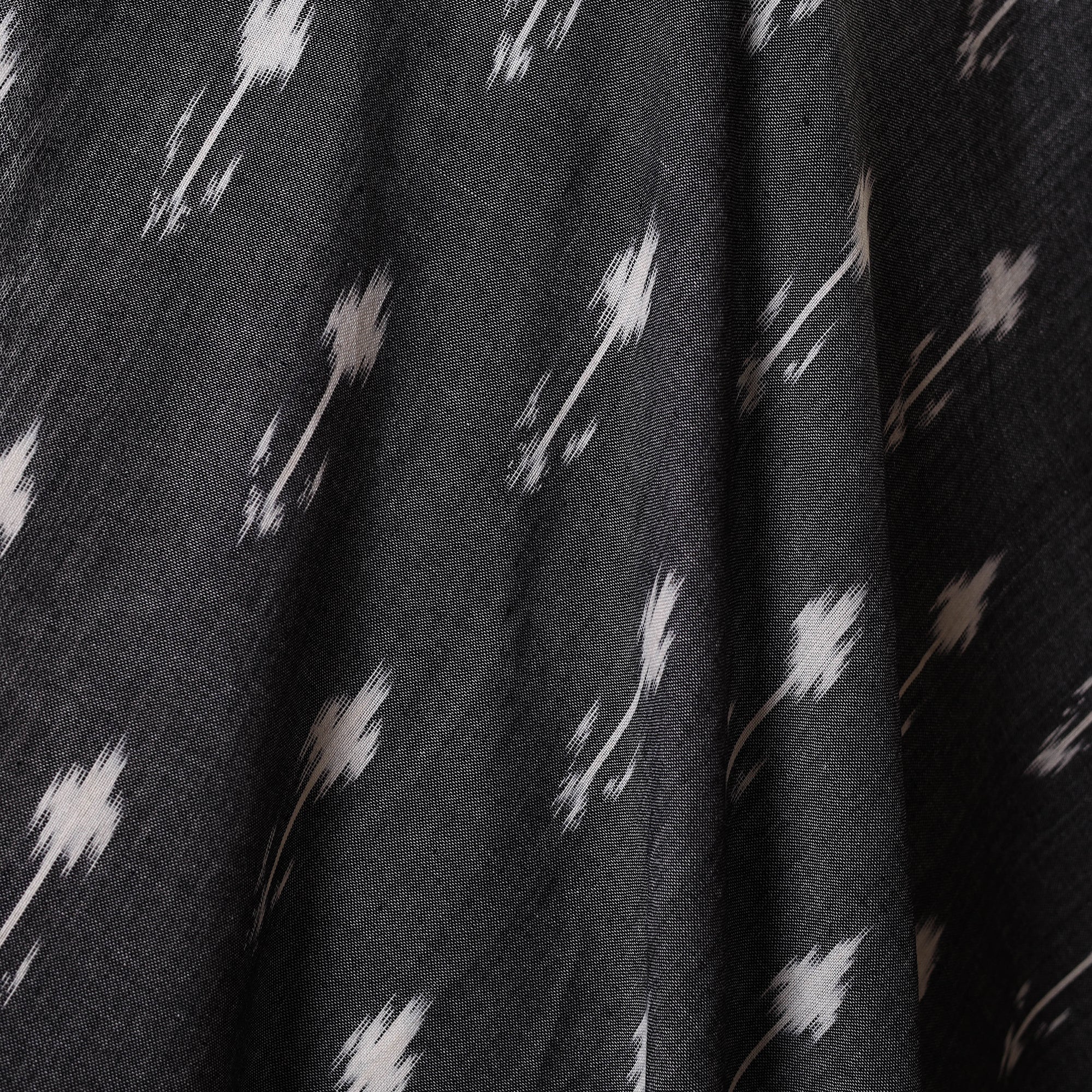 Fine quality grey pochampally ikat weave cotton fabric from Koyyalagudem Village in Andhra Pradesh. Ikat (Ikkat) is a dyeing technique used to pattern textiles that employs a resist dyeing process similar to tie-dye on either the warp or weft fibers prior to dyeing. Ikat has lovely patterns and are world famous for their extremely beautiful colors, texture and designs. Indian Ikat is always admired by the fashion designers around the world.