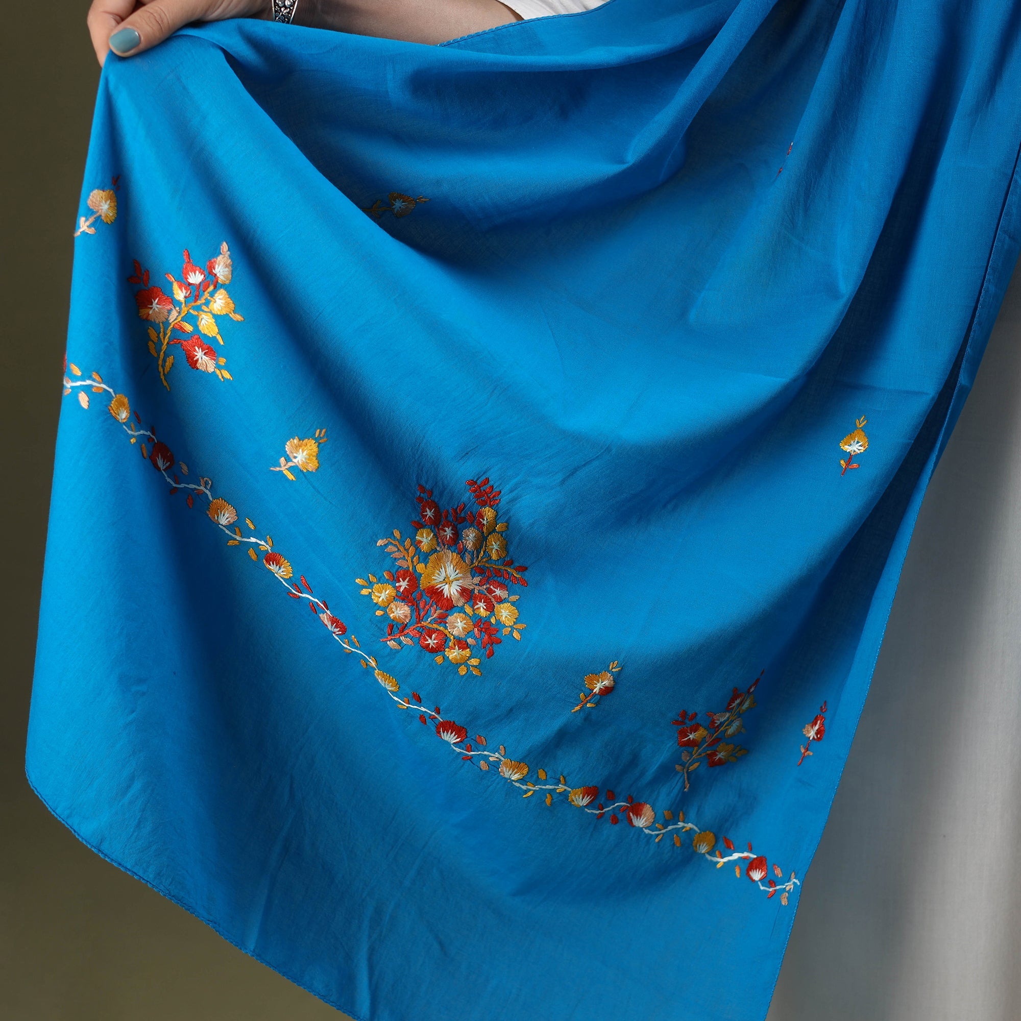 • Blue - cotton kashida embroidery stole 19 - handcrafted