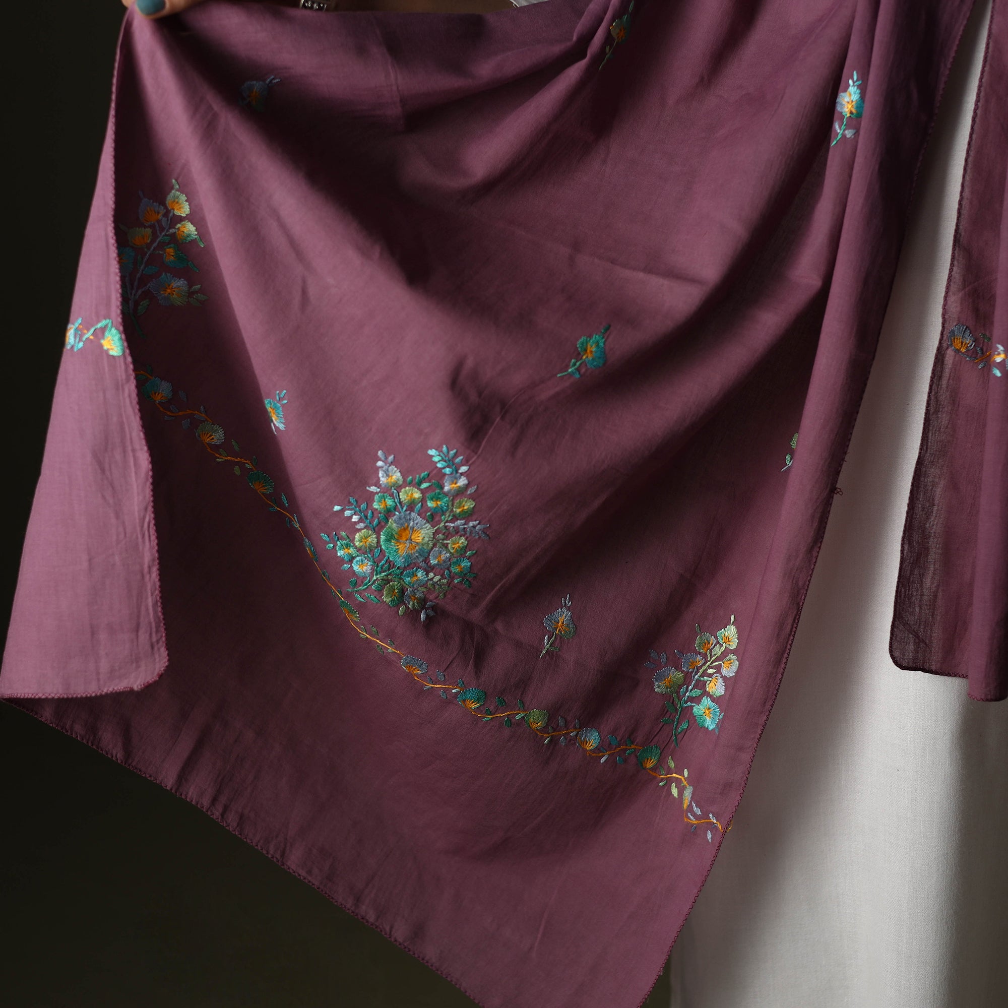 • Purple - cotton kashida embroidery stole 25 - handcrafted