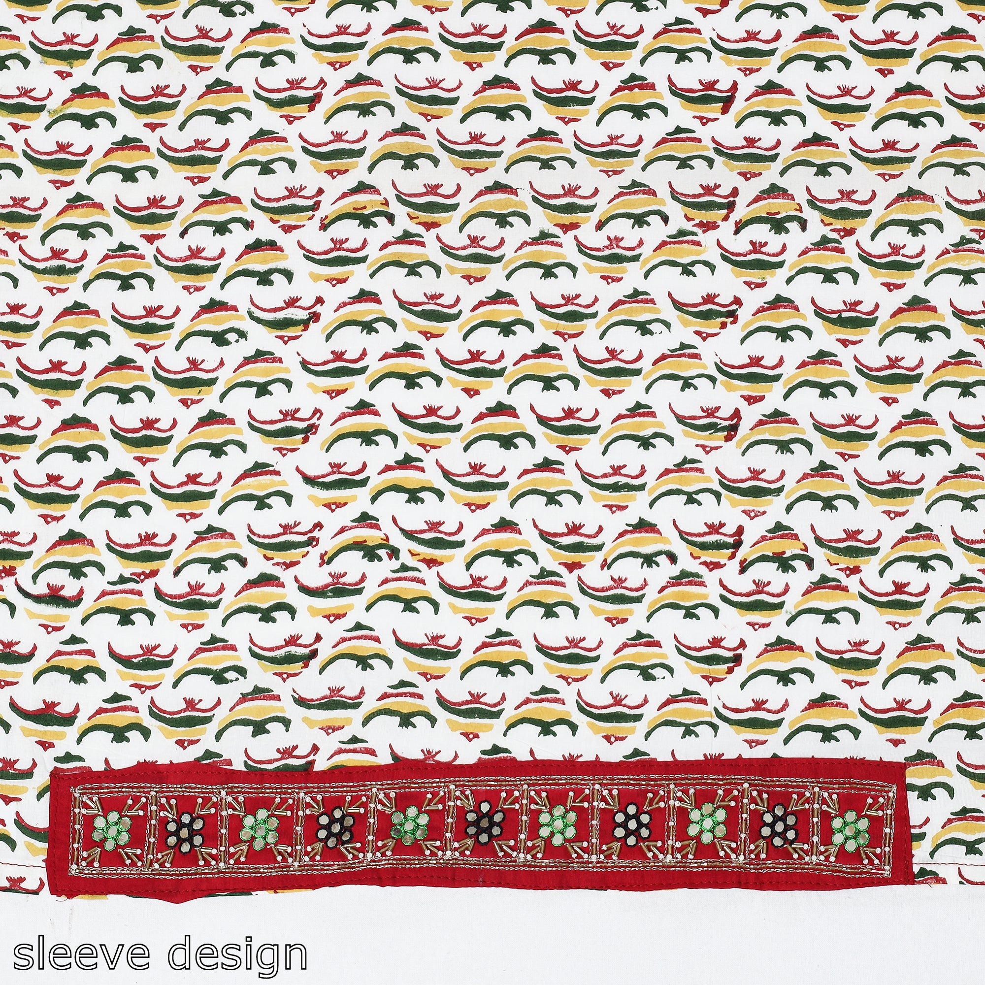 Fine quality zardozi hand embroidered sanganeri block printed cotton blouse material made from cotton fabrics & textured with handmade textiles of India. This embroidered blouse material will go with almost all of your sarees & enhance your look.