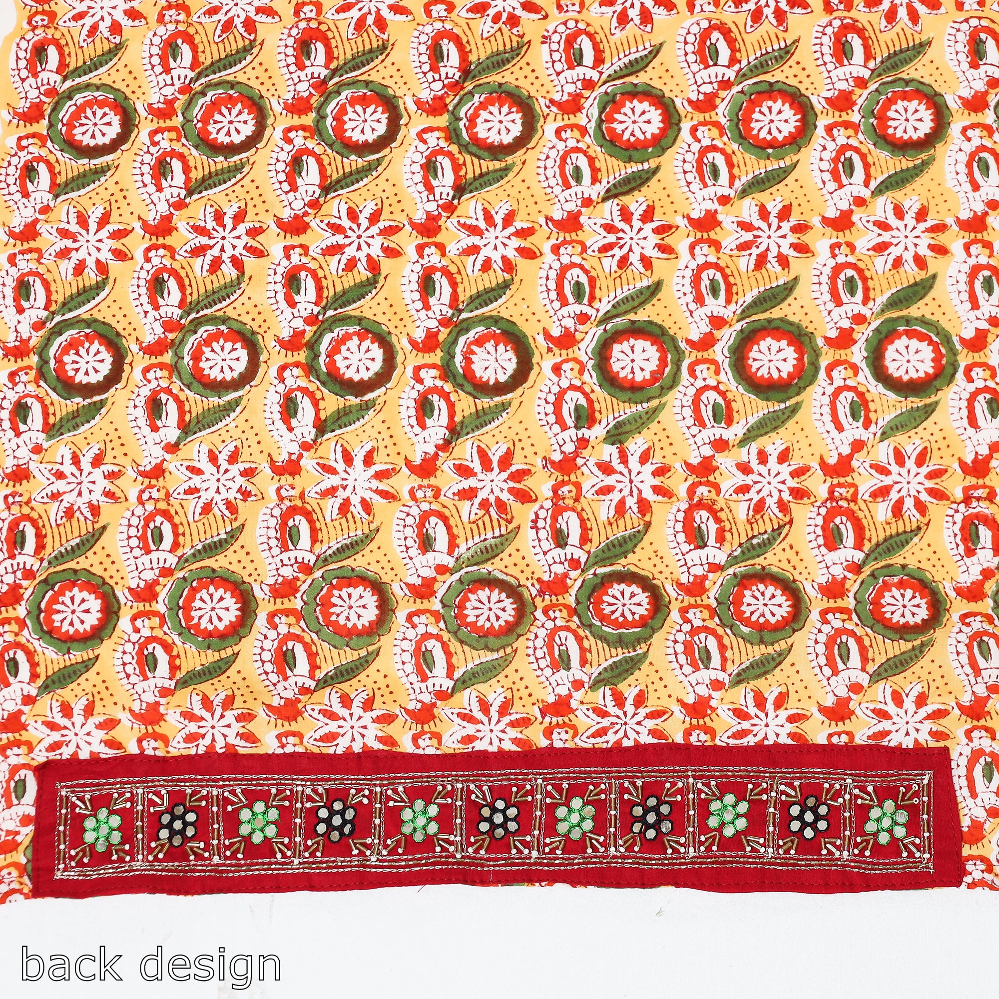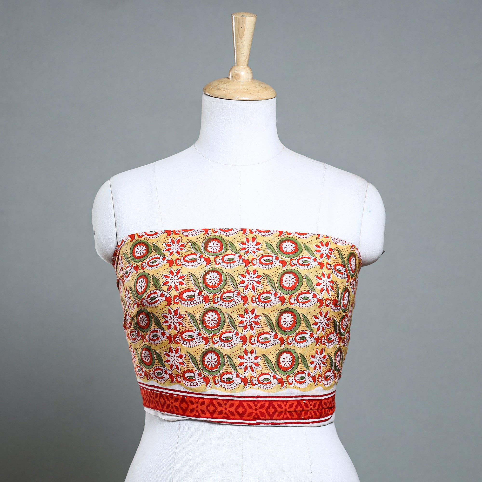 Fine quality zardozi hand embroidered sanganeri block printed cotton blouse material made from cotton fabrics & textured with handmade textiles of India. This embroidered blouse material will go with almost all of your sarees & enhance your look.