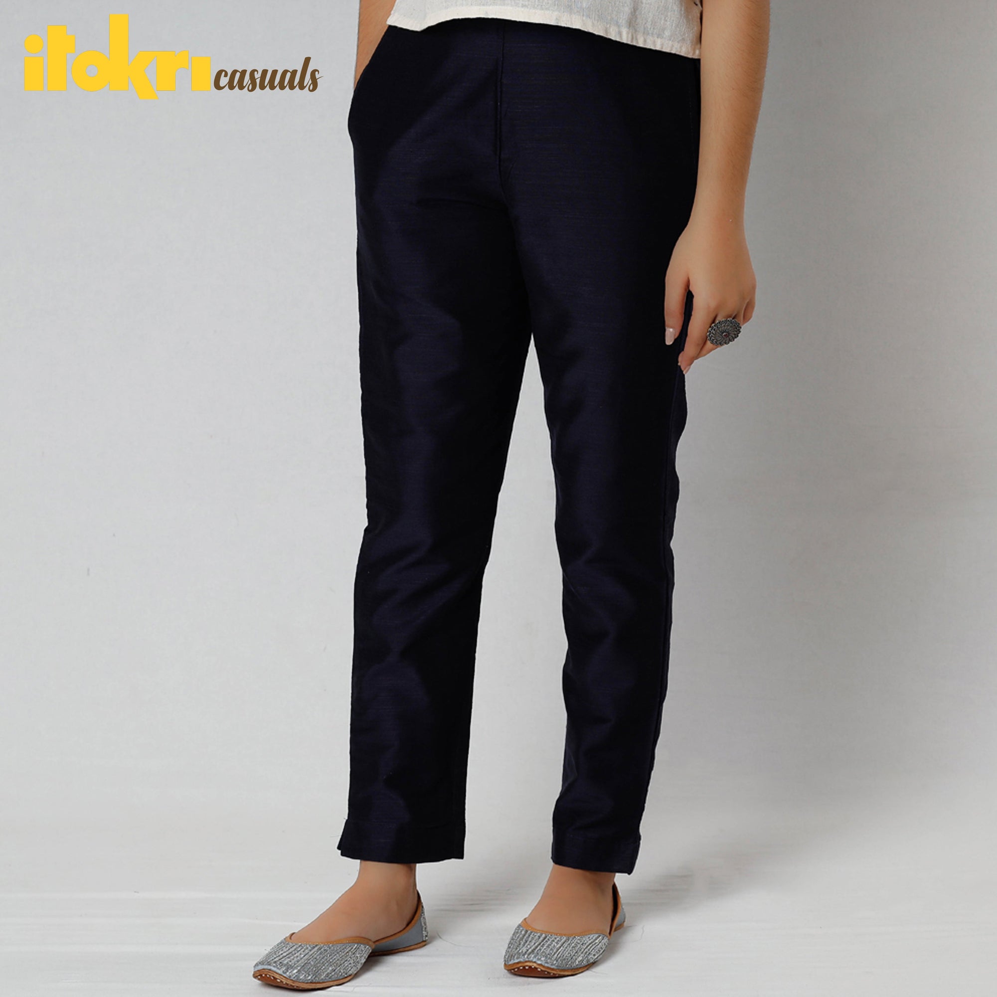 Feel and look beautiful in this silk tapered casual pant with side pockets, made of fine quality silk. This silk pant makes you feel comfortable and stylish all day long. This pant is perfect for your daily outings and every festival.