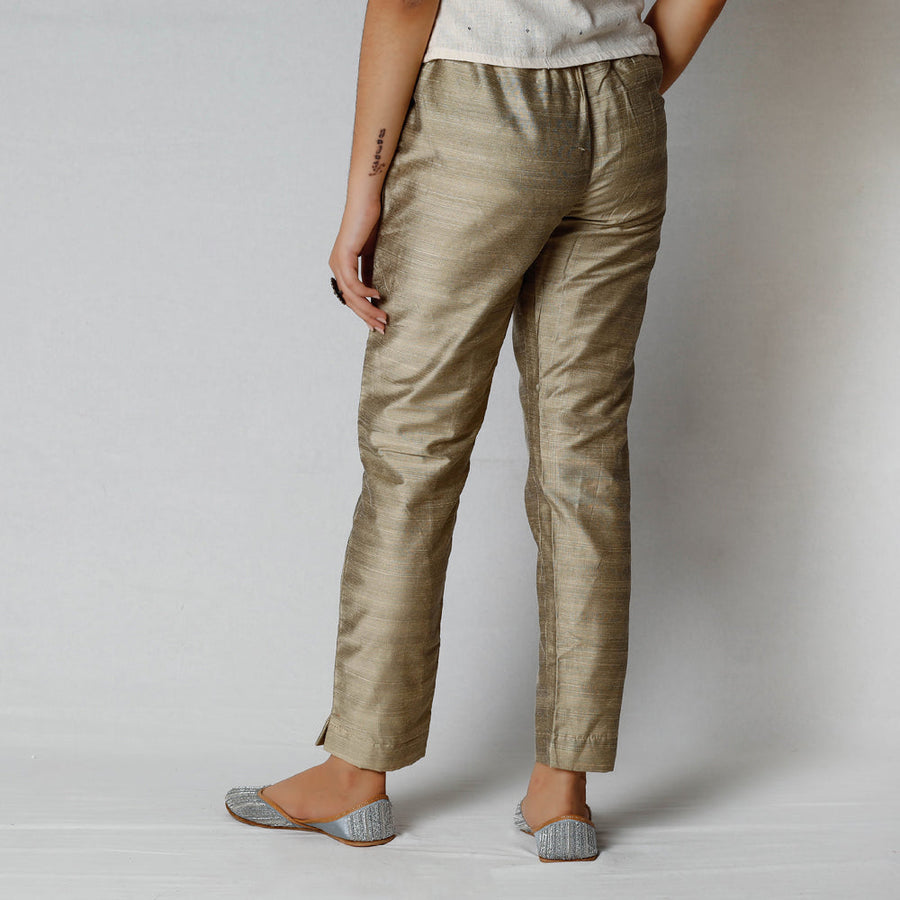 Feel and look beautiful in this silk tapered casual pant with side pockets, made of fine quality silk. This silk pant makes you feel comfortable and stylish all day long. This pant is perfect for your daily outings and every festival.