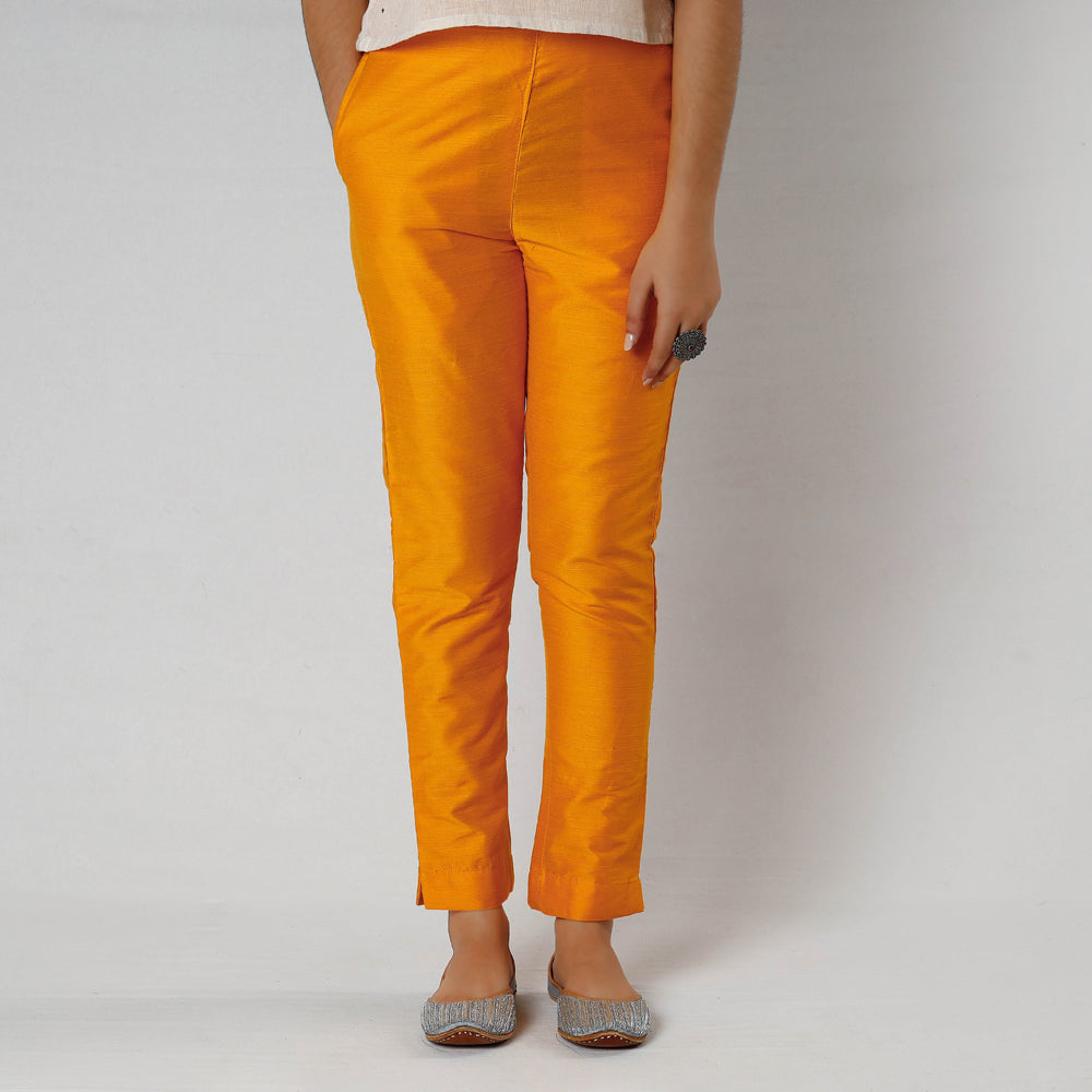 Feel and look beautiful in this silk tapered casual pant with side pockets, made of fine quality silk. This silk pant makes you feel comfortable and stylish all day long. This pant is perfect for your daily outings and every festival.