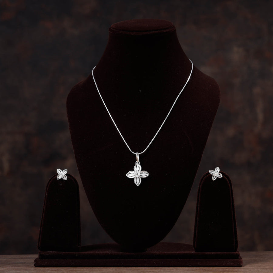 Necklace Chain : Length - 50 cm, Width - 0.1 cm. Pendant : Length - 4 cm, Width - 3.8 cm. Earrings : Length - 1.4 cm, Width - 1.4 cm. (non adjustable snap hook strap lock).