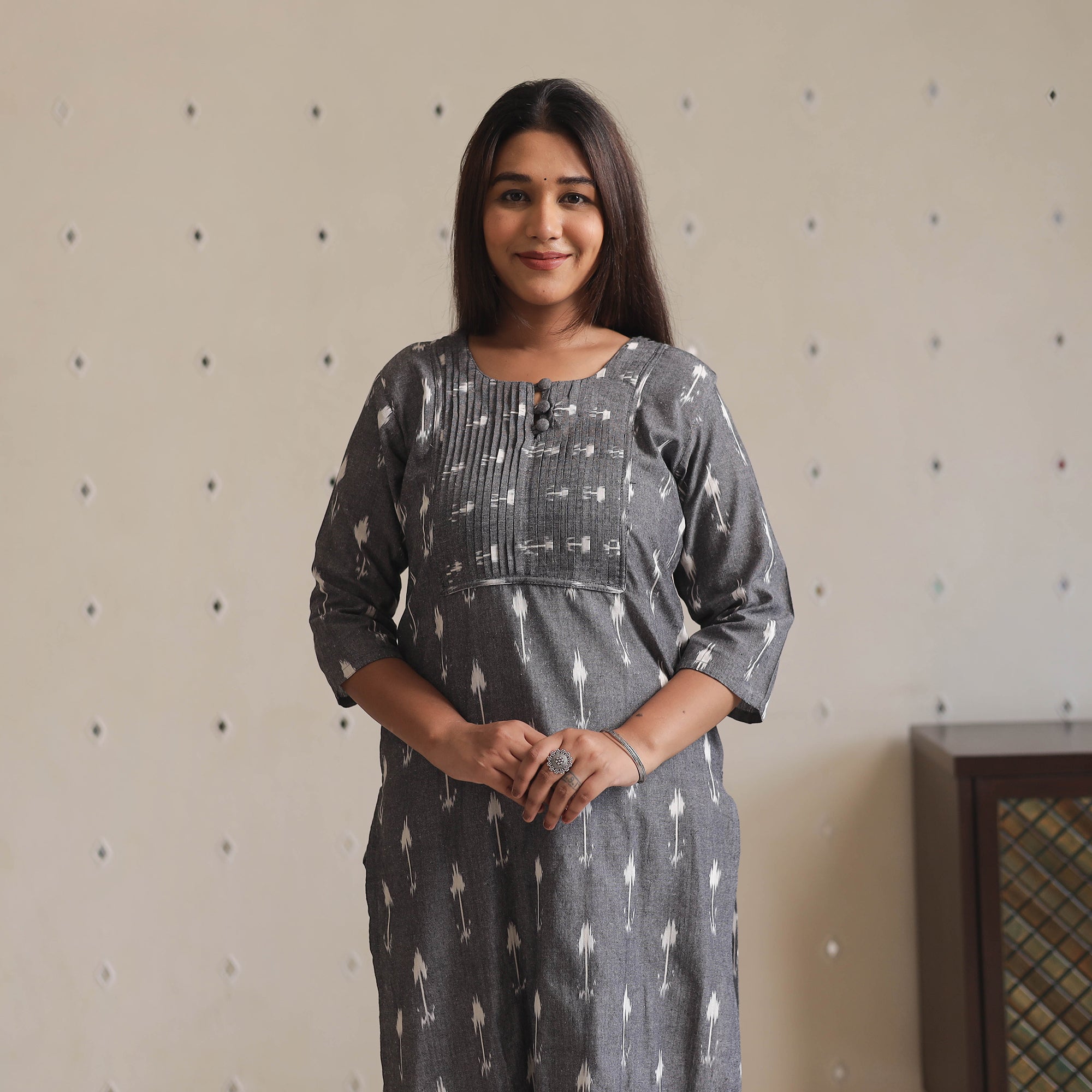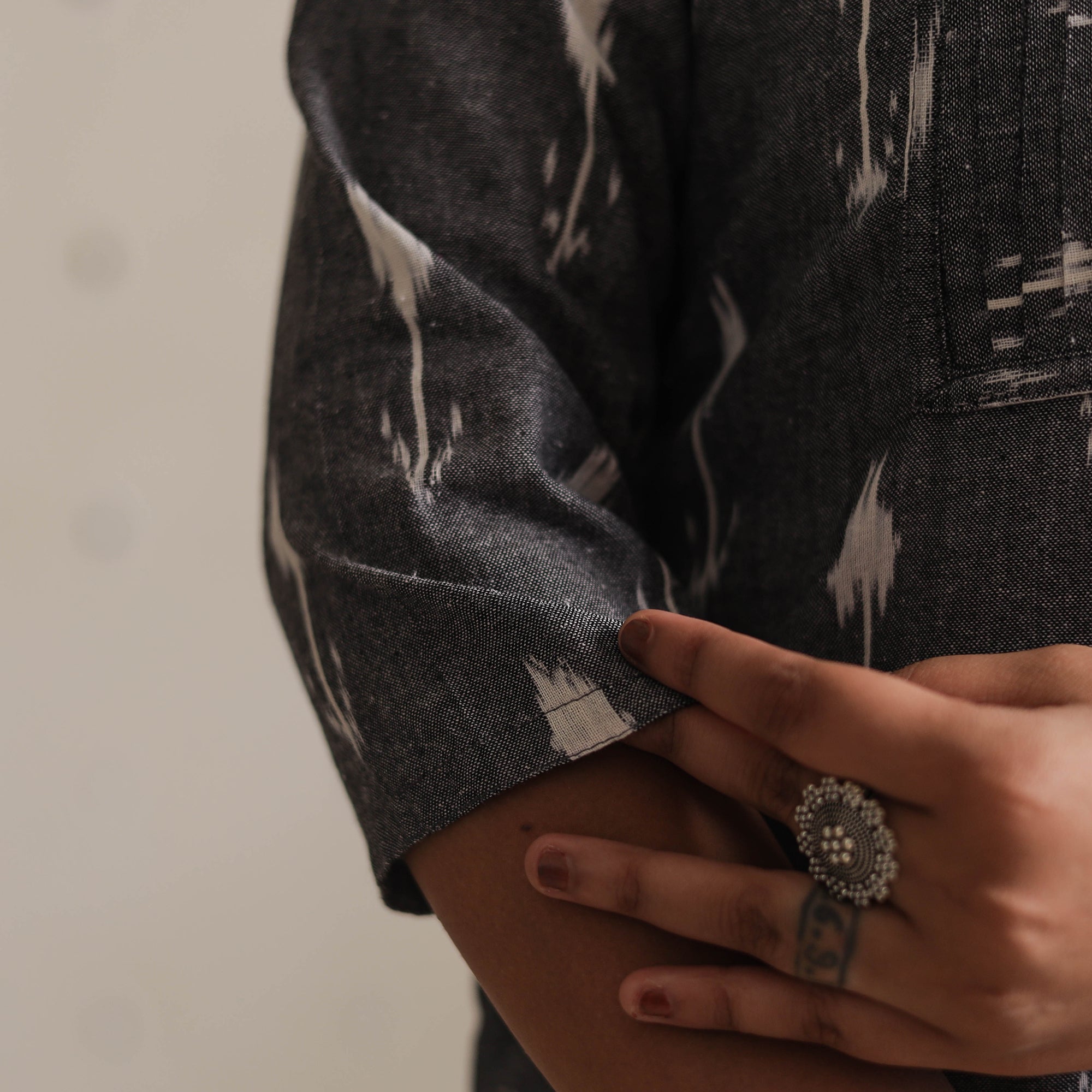 Look and feel beautiful in this uniquely designed pochampally ikat weave cotton long kurta with side pocket. This cotton kurta makes you comfortable with ease all day long. Ikat has lovely patterns in extremely beautiful colours. Ikat fabrics are world famous for their colours, texture and designs. Indian Ikat is one of the fabrics that is always admired by the fashion designers around the world.
