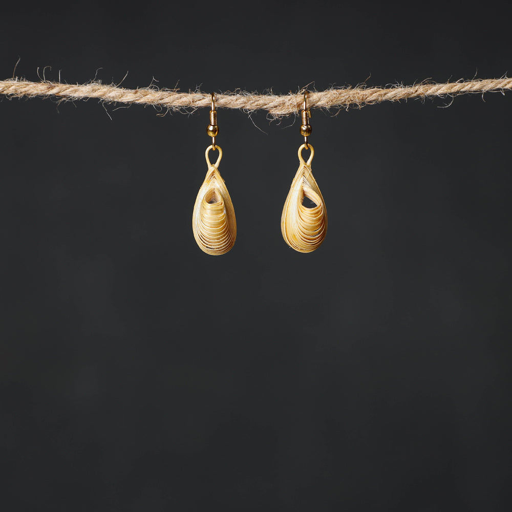 Beige handmade bamboo craft earrings, made from locally sourced variety of manvel bamboo crafted by tribal artisans of Raigad, Maharashtra.