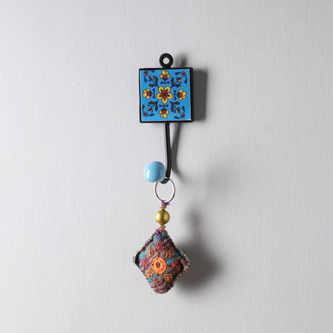 This finely done blue wall hanger is crafted from blue pottery ceramic tile & iron rod. It has 1 peg for hanging keys, coat, towel or any clothing, has one wall mount hook on the back for easy hanging. Blue Pottery is widely recognized as a traditional craft of Jaipur, though it is Turko-Persian in origin. The name 'blue pottery' comes from the eye-catching blue dye used to color the pottery. Jaipur blue pottery, made out of a similar frit material to Egyptian faience, is glazed and low-fired. No clay is used: the 'dough' for the pottery is prepared by mixing quartz stone powder, powdered glass, Multani Mitti (Fuller's Earth), borax, gum and water. It is the only pottery in the world that does not use clay.