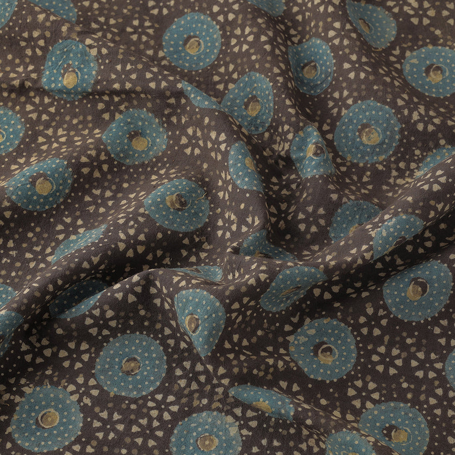 Fine quality 3 kaamajrakh block printing cotton fabric, made using natural dyes through traditional ajrakh technique of hand-block printing practised by the artisans in Kutch region of Gujarat. Ajrakh is a traditional vegetable dyeing and resist block-printing technique on cloth. It is estimated to be around 4,500 years old. The Ajrakh artisans in India are originally from Sindh and they migrated to Kutch in Gujarat and Barmer in Rajasthan. Ajrakh is the traditional attire of the Maldhari pastoral community of Bhuj. The process of 'Ajrakh' is a long drawn process with many stages and each layer of colour is printed after a gap of time so the cloth has to stay for the day.