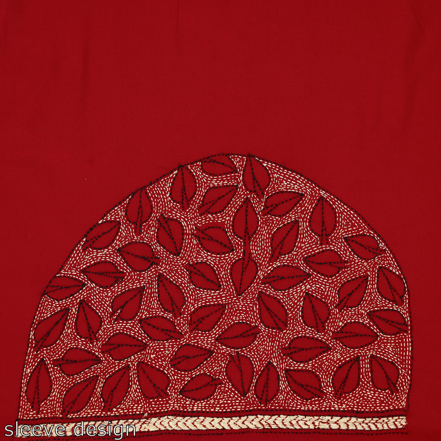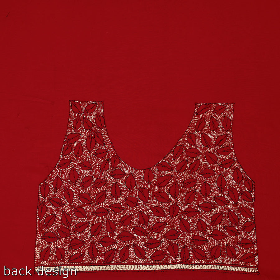 Fine quality kantha embroidered pure cotton blouse piece, designed with traditional patterns & has been hand embroidered using West Bengal's traditional craft technique of Kantha.