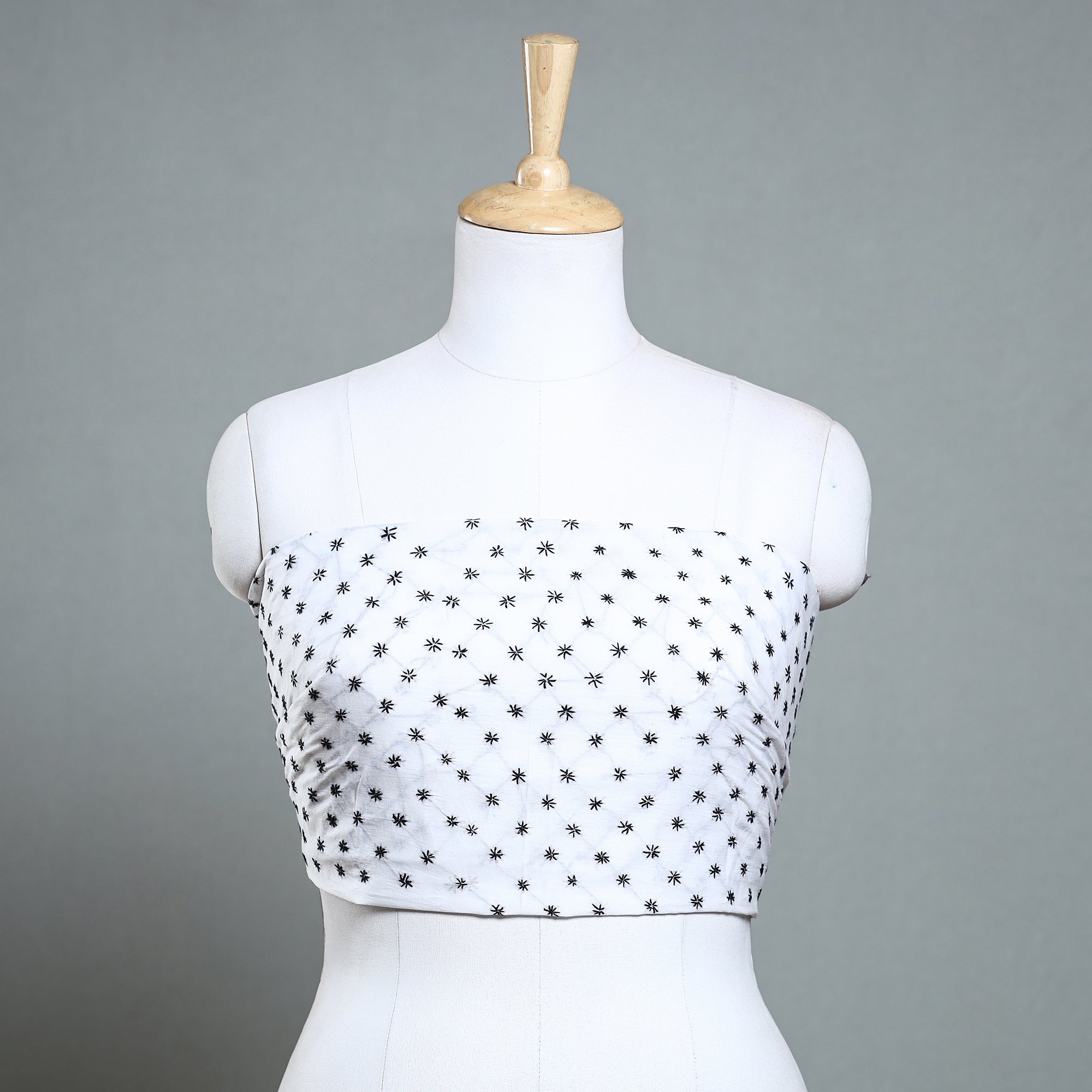 Fine quality white kantha embroidered pure cotton blouse piece, designed with traditional patterns & has been hand embroidered using West Bengal's traditional craft technique of Kantha.