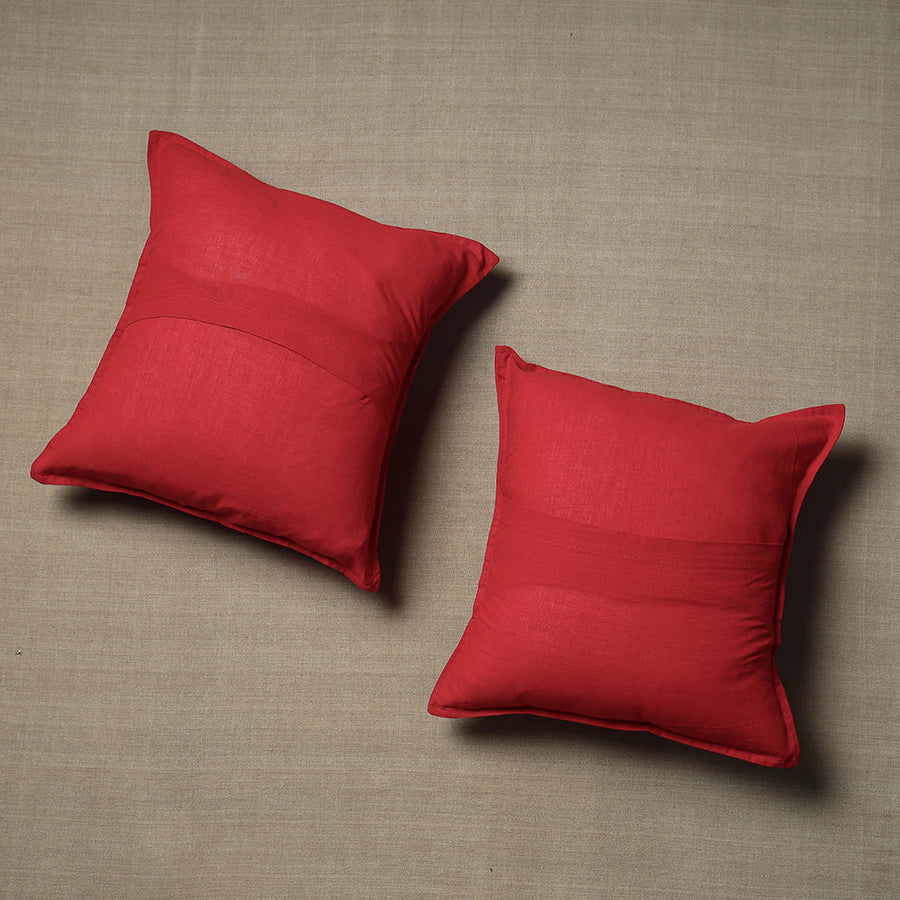 These red kantha work cushion covers is made from cotton fabric. It is designed with contemporary patterns & has been hand embroidered by Uttarakhand traditional craft technique of kantha tagai using thread yarns.