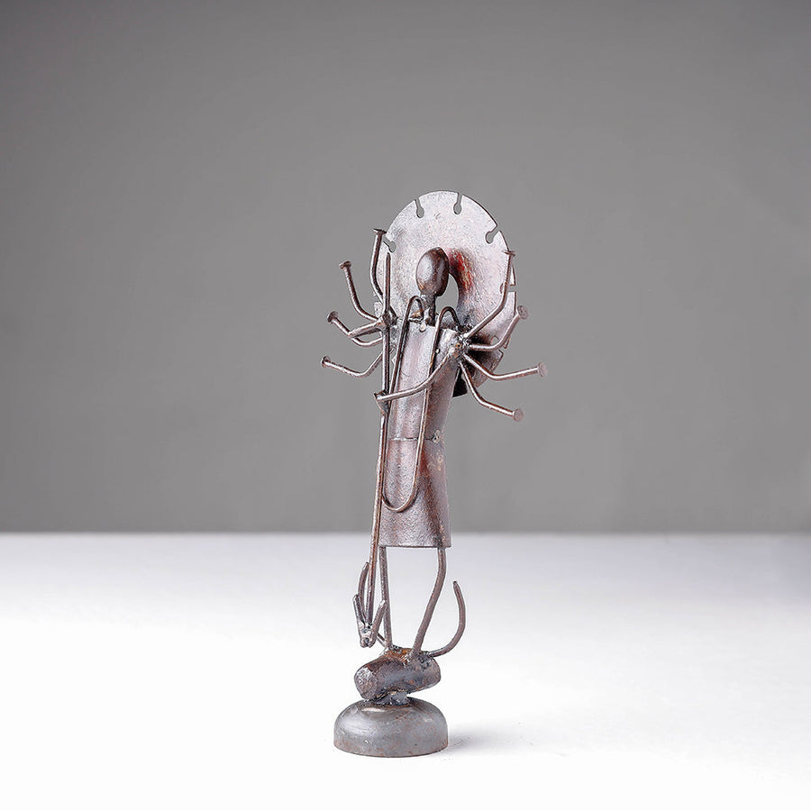 This handmade recycled junk sculpture is made by designing, collecting scraps, welding, colouring, and doing the final polish by Debabrata Ruidas from West Bengal.