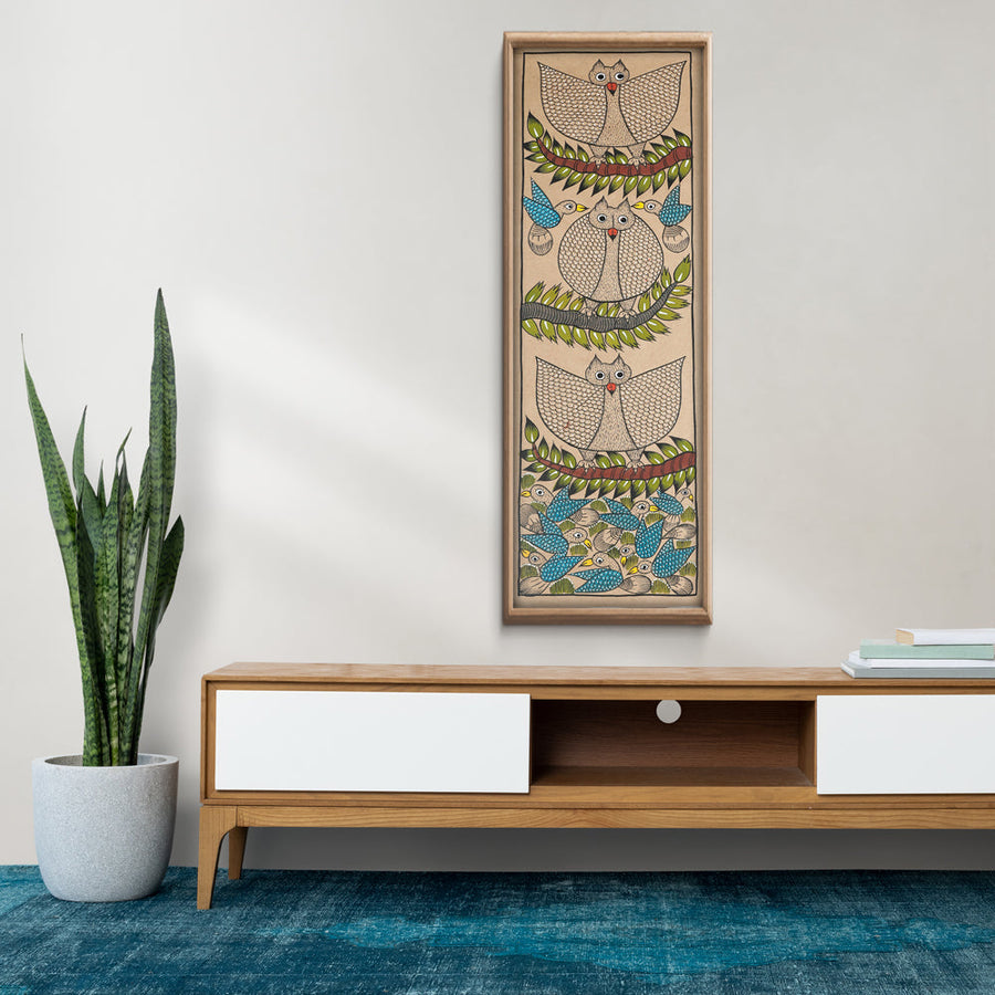 This traditional artwork of pattachitra painting is done on handmade paper base, made using natural colours and permanent ink. Pattachitra or Patachitra is a general term for traditional scroll painting, based in the eastern Indian states of Odisha and West Bengal. Pattachitra artform is known for its intricate details as well as mythological narratives and folktales inscribed in it. Pattachitra is one of the ancient artworks of Odisha. Patrachitras are a component of an ancient Bengali narrative art, originally serving as a visual device during the performance of a song. This Bengal Art comes from Midnapore from the family of Laltu Chitrakar. A wonderful painting for the discerning decor aficionado and art lover or a gift for someone interested in storytelling tradition. These are priceless collectibles.