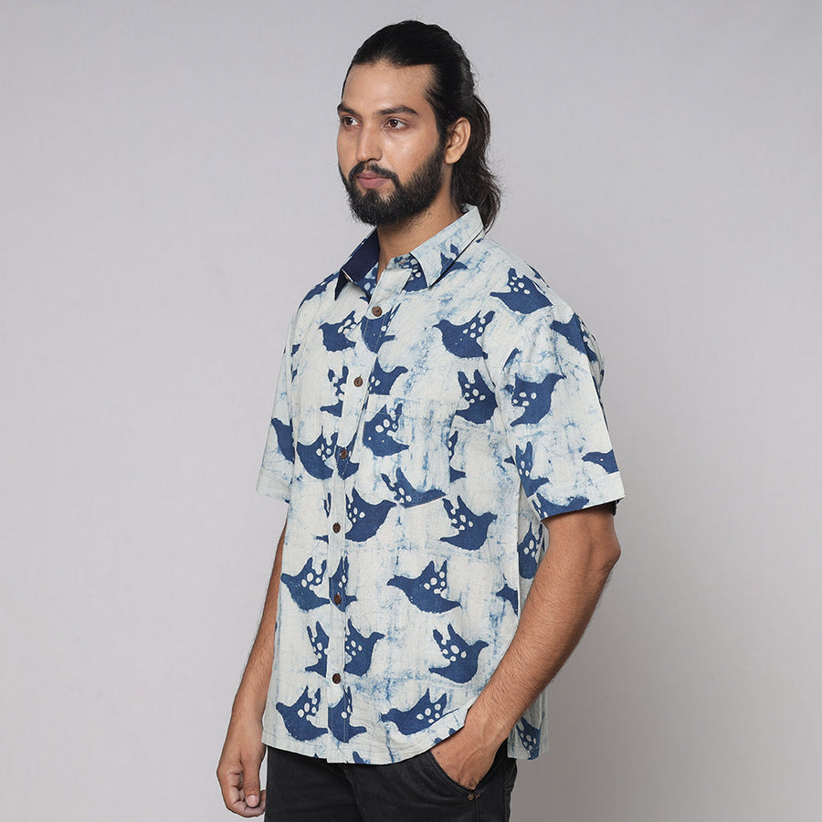 Pure cotton, natural dyed, hand block printed shirt for men. Contemporary designs made through traditional processes, by skilled fourth generation textile printers in Rajasthan. This slow fashion, hand block printed cotton shirt brings back the love for traditional skills, with a modern aesthetic and design.