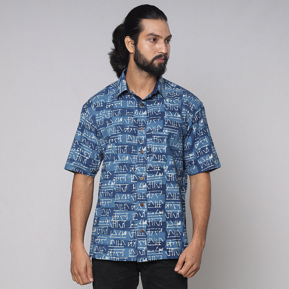 Pure cotton, natural dyed, hand block printing shirt for men. Contemporary designs made through traditional processes, by skilled fourth generation textile printers in Rajasthan. This slow fashion, hand block printed cotton shirt brings back the love for traditional skills, with a modern aesthetic and design.