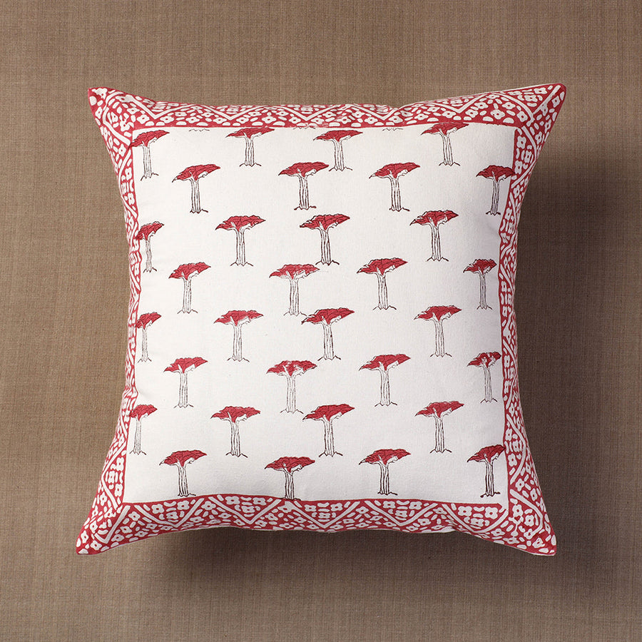 Fine quality white sanganeri block printed cotton cushion cover. Sanganeri is a hand-block printing technique originating from Sanganer, a village in the southern part of Jaipur, Rajasthan. Bleed free VAT dyes used. Spruce up your living room decor using this sanganeri cushion cover.