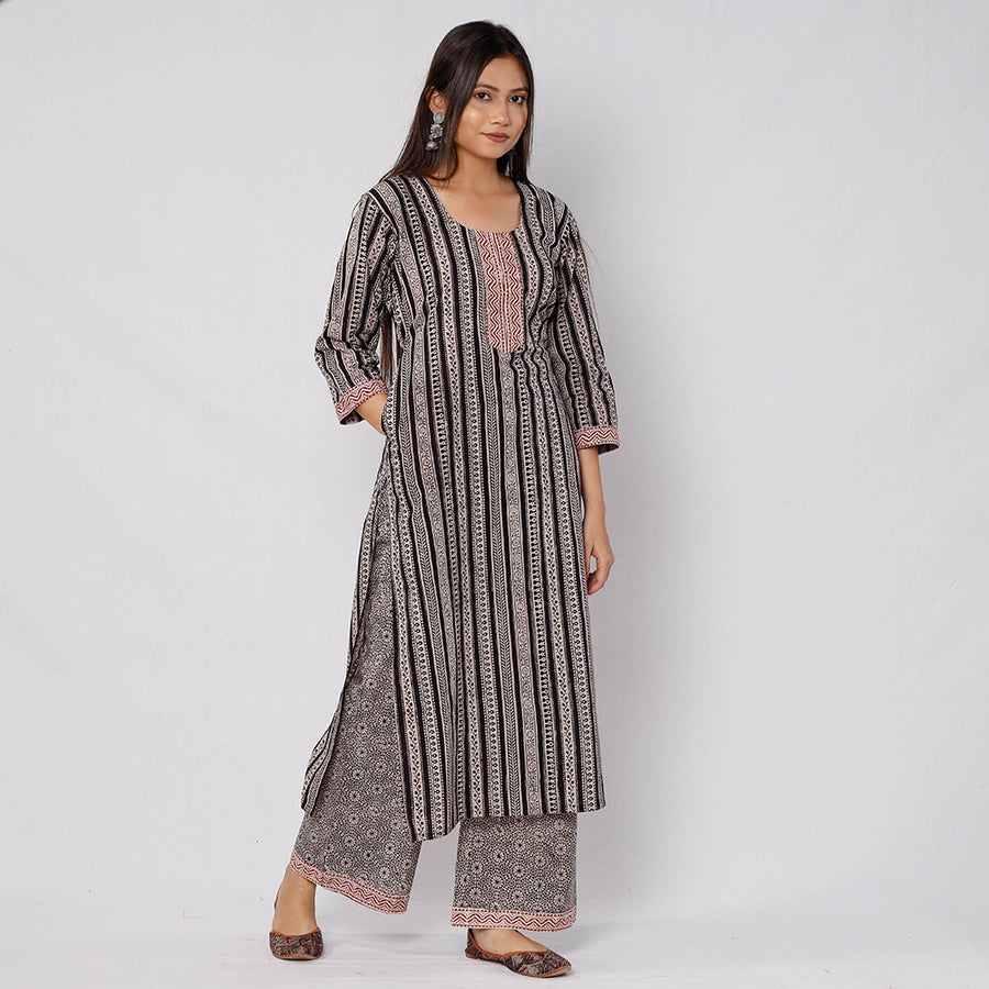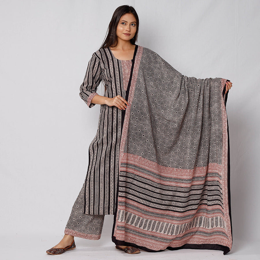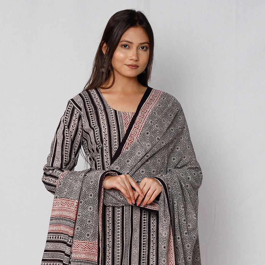 Look and feel beautiful in this uniquely designed bagh block printed cotton side pocket long kurta with palazzo & dupatta set. This cotton suit makes you comfortable with ease all day long. This suit is perfect for your daily outing and for a special occasion. Bagh is a hand block printing technique from the Bagh, a small tribal town in Dhar district of Madhya Pradesh. ‘Bagh prints’ are trendy, cool and comfortable cloth material. |