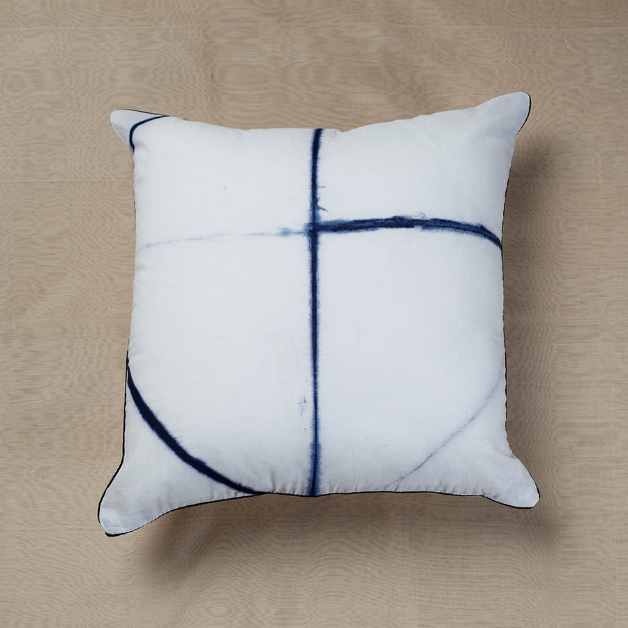 Fine quality shibori tie-dyecotton cushion cover. (hand dyed using shibori tie and dye technique in which the fabric is tied using clamp or stitches in the required design and the pattern is dyed)
