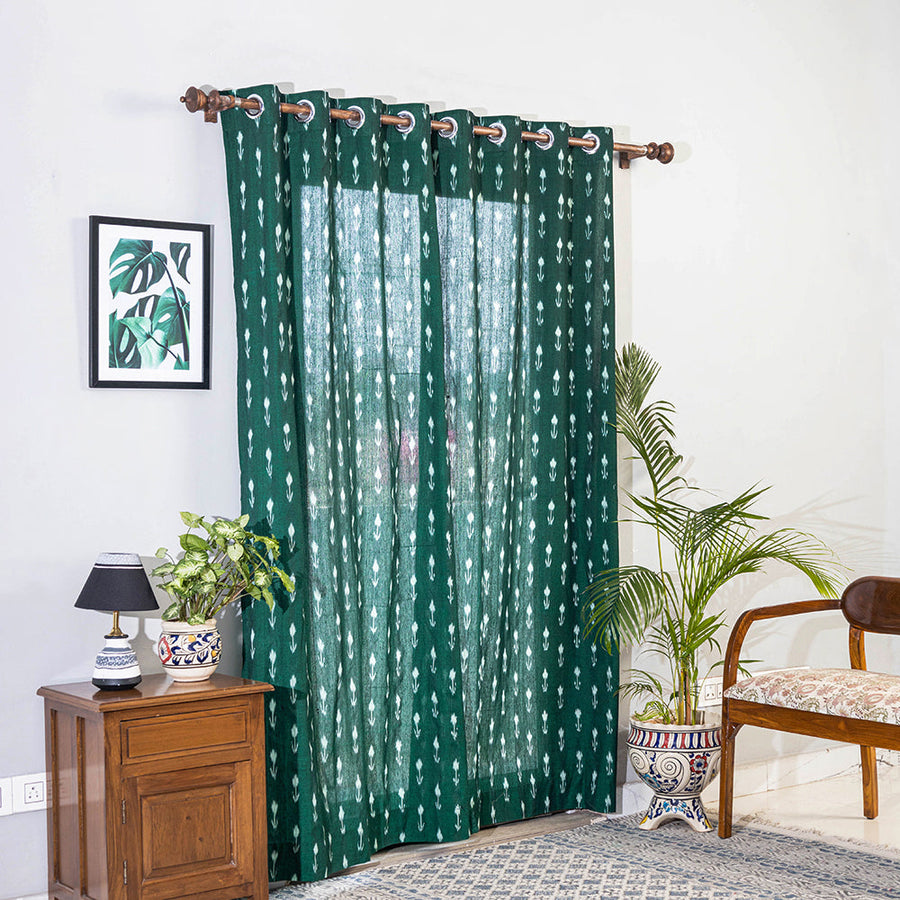 Fine quality pochampally ikat weave pure cotton fabric door curtain. Add an ethnic feel to any room in your house by adding this curtain to your exquisite home decor collection. Ikat has lovely patterns in extremely beautiful colours. Ikat fabrics are world famous for their colours, textures, and designs. Indian Ikat is one of the fabrics that is always admired by fashion designers around the world.
