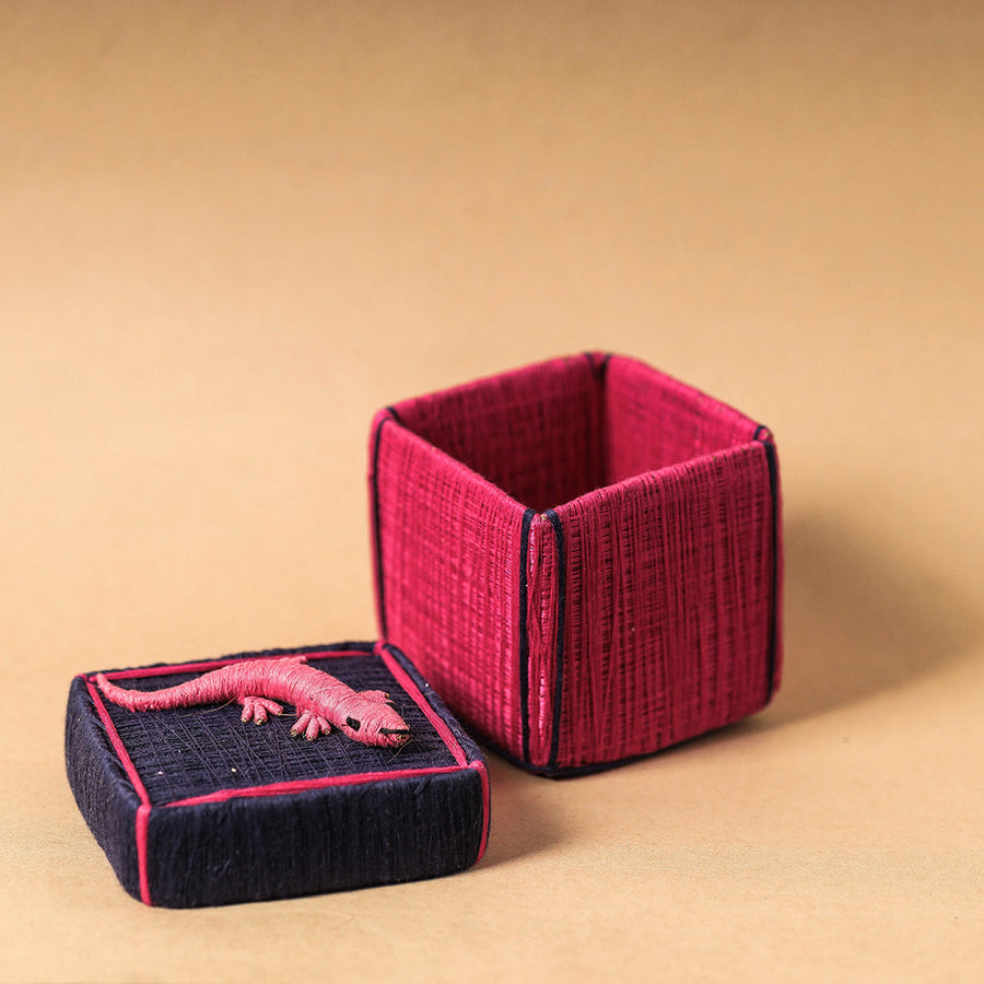 This pink handcrafted jewelry box is made from coir and threads. Coir is a totally natural and an eco-friendly material and an exceptionally tensile fiber extracted from the nuts of coconut palms.