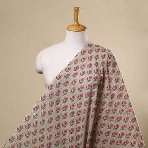 Beige - Hand Block Print Cotton Sanganeri Fabric 08