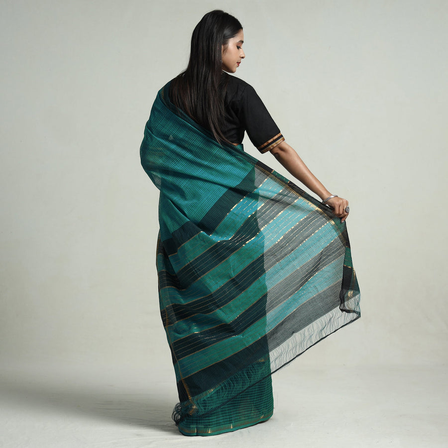 Fine handloom mangalagiri missing checks cotton saree with pochampally ikat blouse piece, that showcases beautiful handloom texture from Andhra Pradesh. Mangalagiri sarees are known for their intricate and rich designs that are simple yet classy. The cotton or silk sarees of Mangalagiri are quite popular among the South Indian women, with the border designs adding a charming elegance.