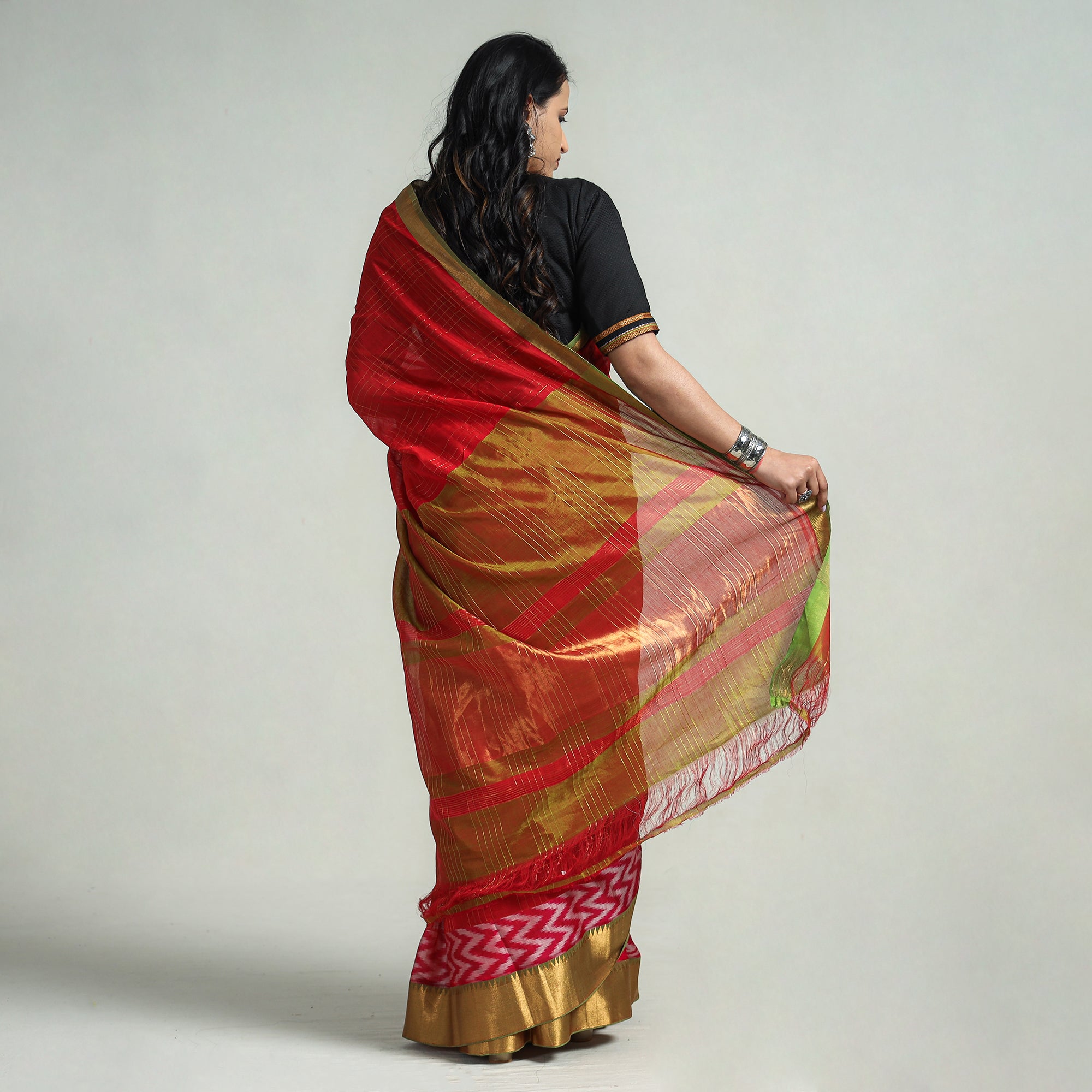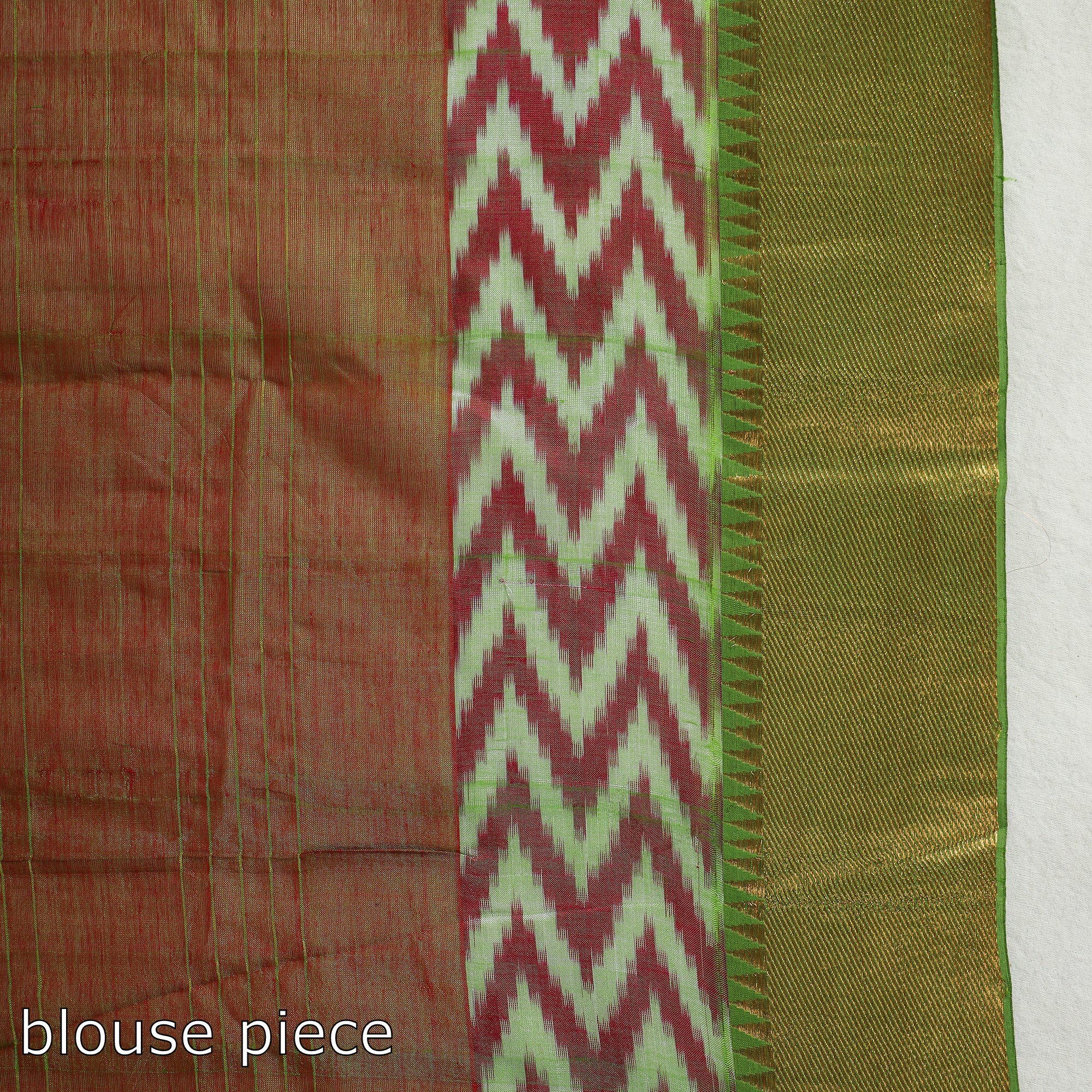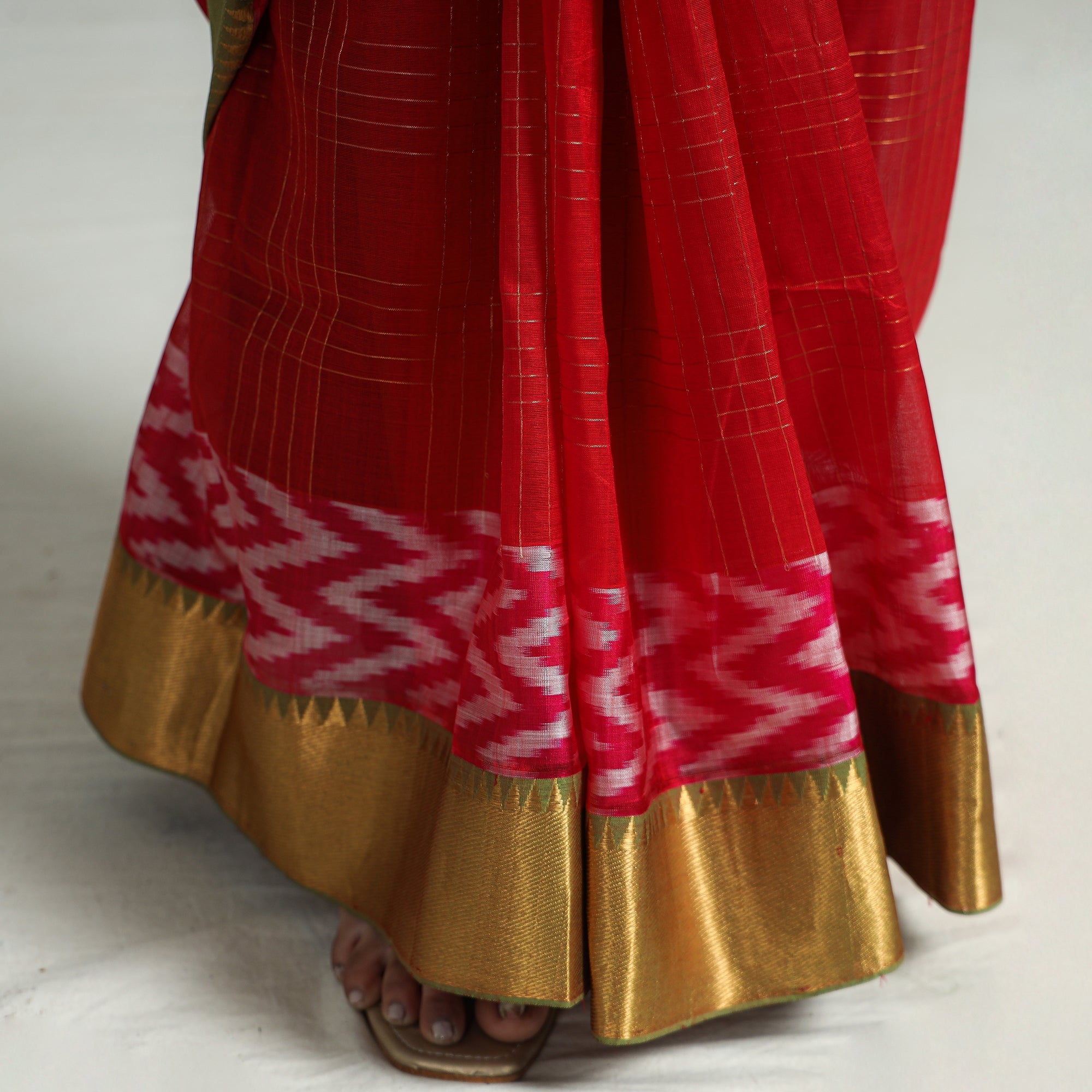 Elevate your wardrobe with our mangalagiri silk-cotton saree, featuring a zari checks and ikat border. This handloom beauty, crafted by master artisan Lakshman Rao in Andhra Pradesh, combines tradition with sophistication. Mangalagiri sarees are celebrated for their simple yet rich designs, and this piece exemplifies timeless elegance. Perfect for festive occasions or cultural events, this saree blends comfort with classic style.