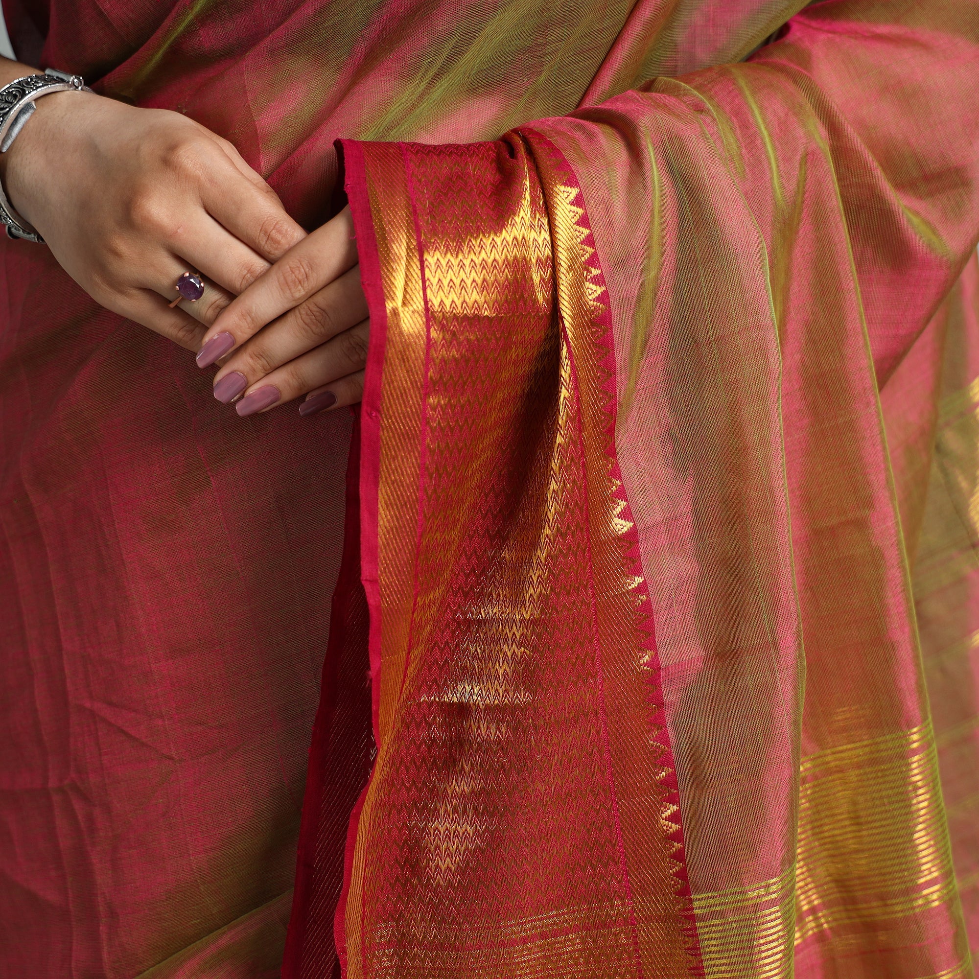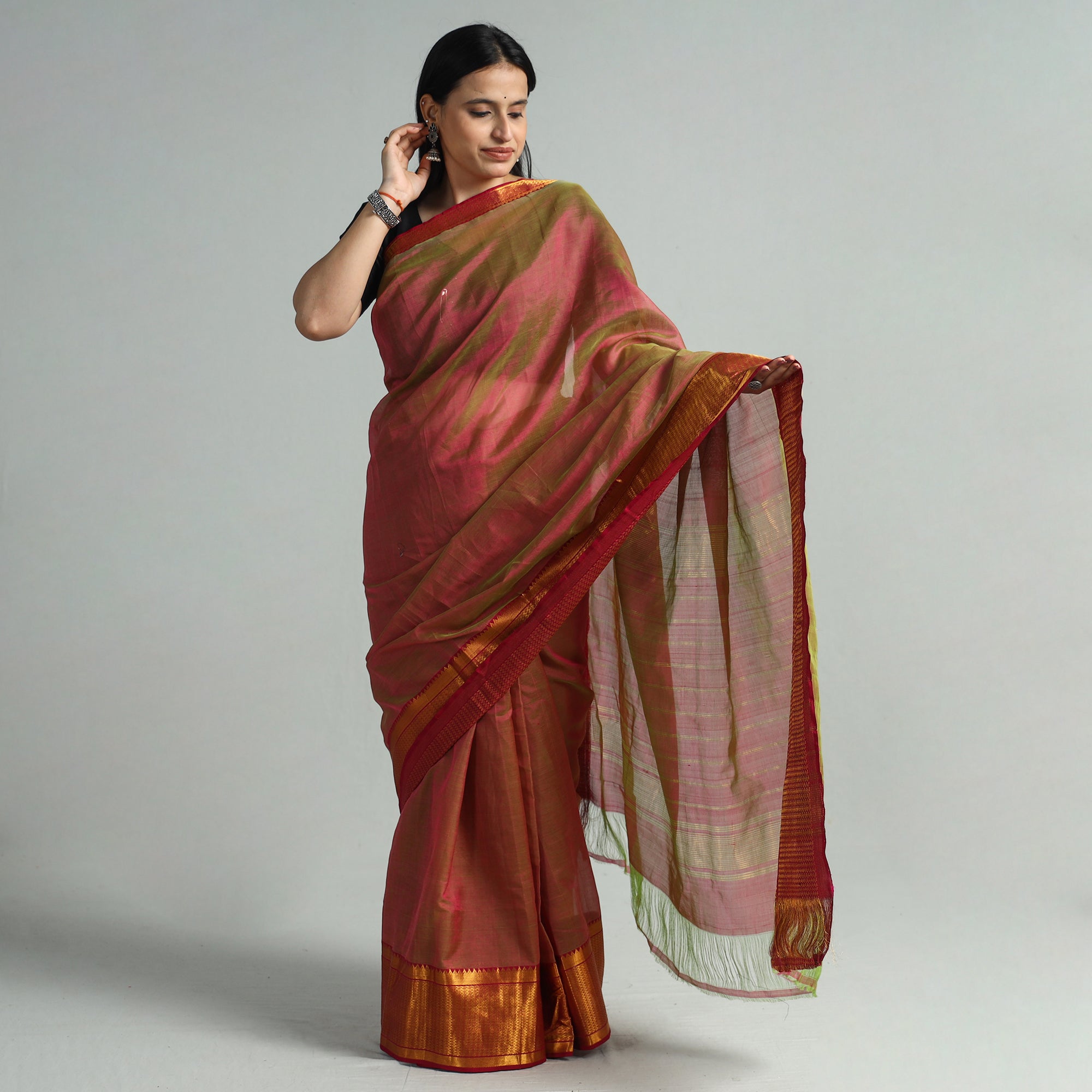 Elevate your wardrobe with our mangalagiri silk-cotton saree, featuring a zari border. This handloom beauty, crafted by master artisan Lakshman Rao in Andhra Pradesh, combines tradition with sophistication. Mangalagiri sarees are celebrated for their simple yet rich designs, and this piece exemplifies timeless elegance. Perfect for festive occasions or cultural events, this saree blends comfort with classic style.