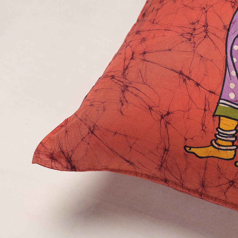 Fine quality hand batik printing pure cotton cushion cover from Ujjain. Batik is a technique of wax-resist dyeing applied to whole cloth, or cloth made using this technique. The traditional designs and motifs in Indian batik are often passed down from one generation to another.