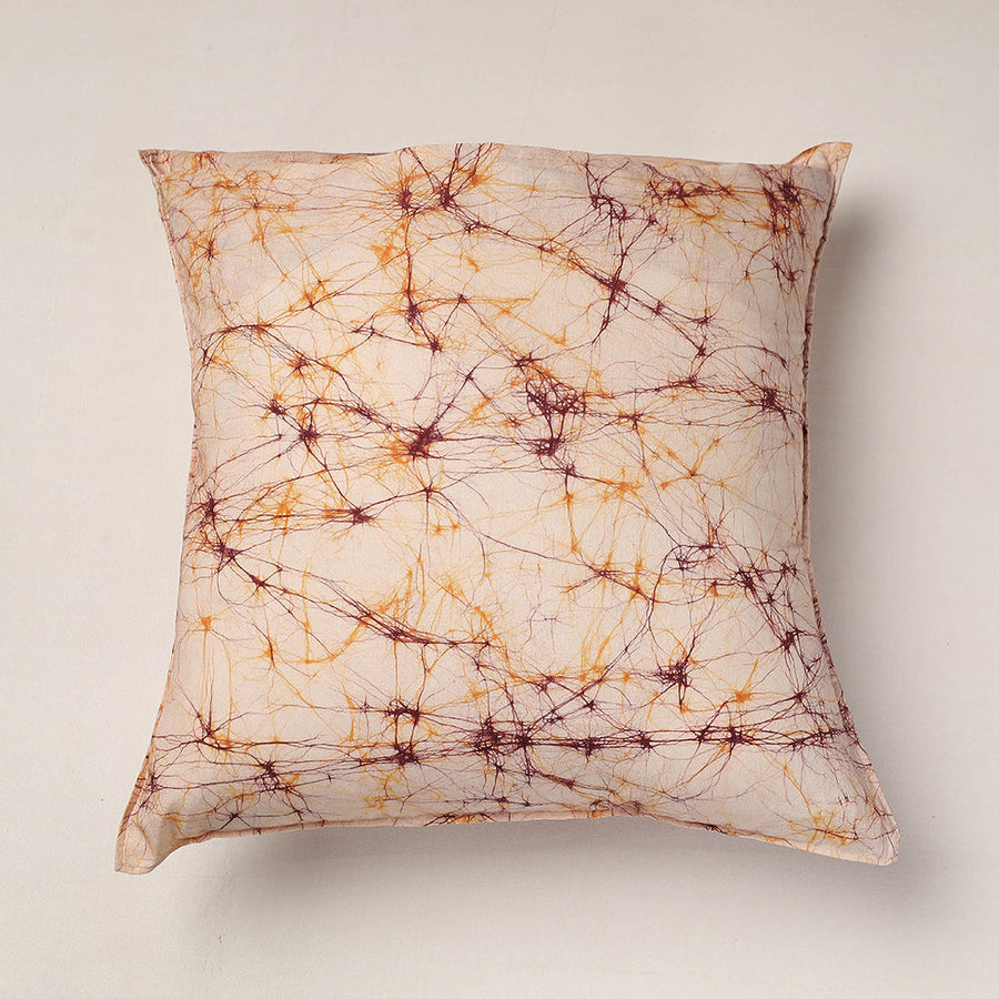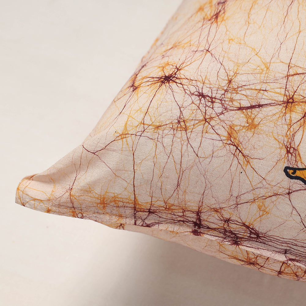 Fine quality beige hand batik printing pure cotton cushion cover from Ujjain. Batik is a technique of wax-resist dyeing applied to whole cloth, or cloth made using this technique. The traditional designs and motifs in Indian batik are often passed down from one generation to another.