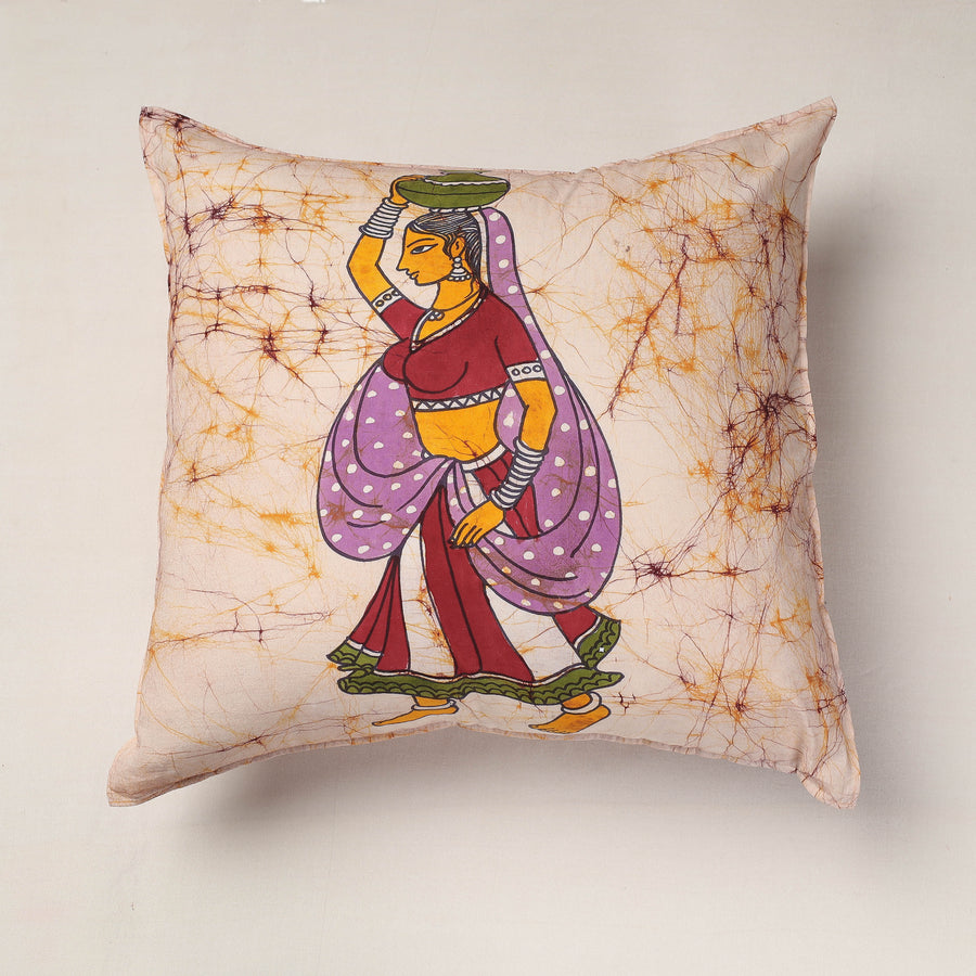 Fine quality hand batik printing pure cotton cushion cover from Ujjain. Batik is a technique of wax-resist dyeing applied to whole cloth, or cloth made using this technique. The traditional designs and motifs in Indian batik are often passed down from one generation to another.