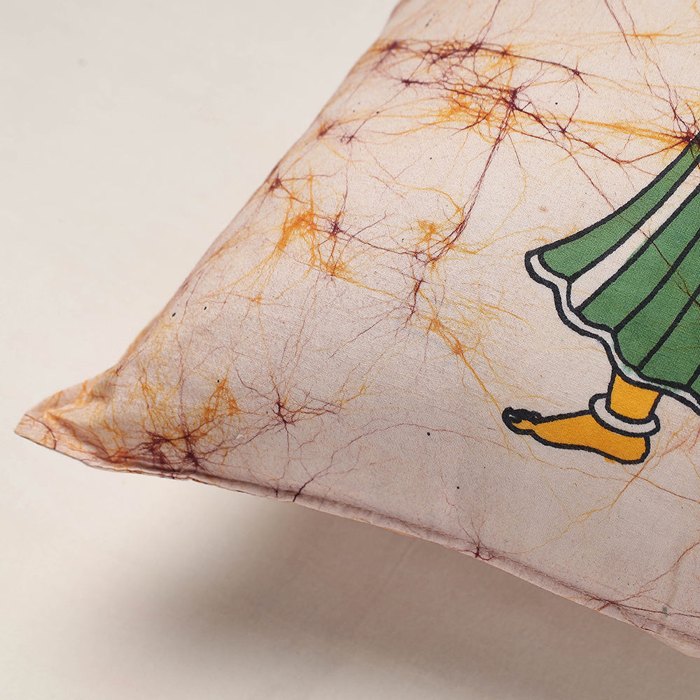 Fine quality hand batik printing pure cotton cushion cover from Ujjain. Batik is a technique of wax-resist dyeing applied to whole cloth, or cloth made using this technique. The traditional designs and motifs in Indian batik are often passed down from one generation to another.