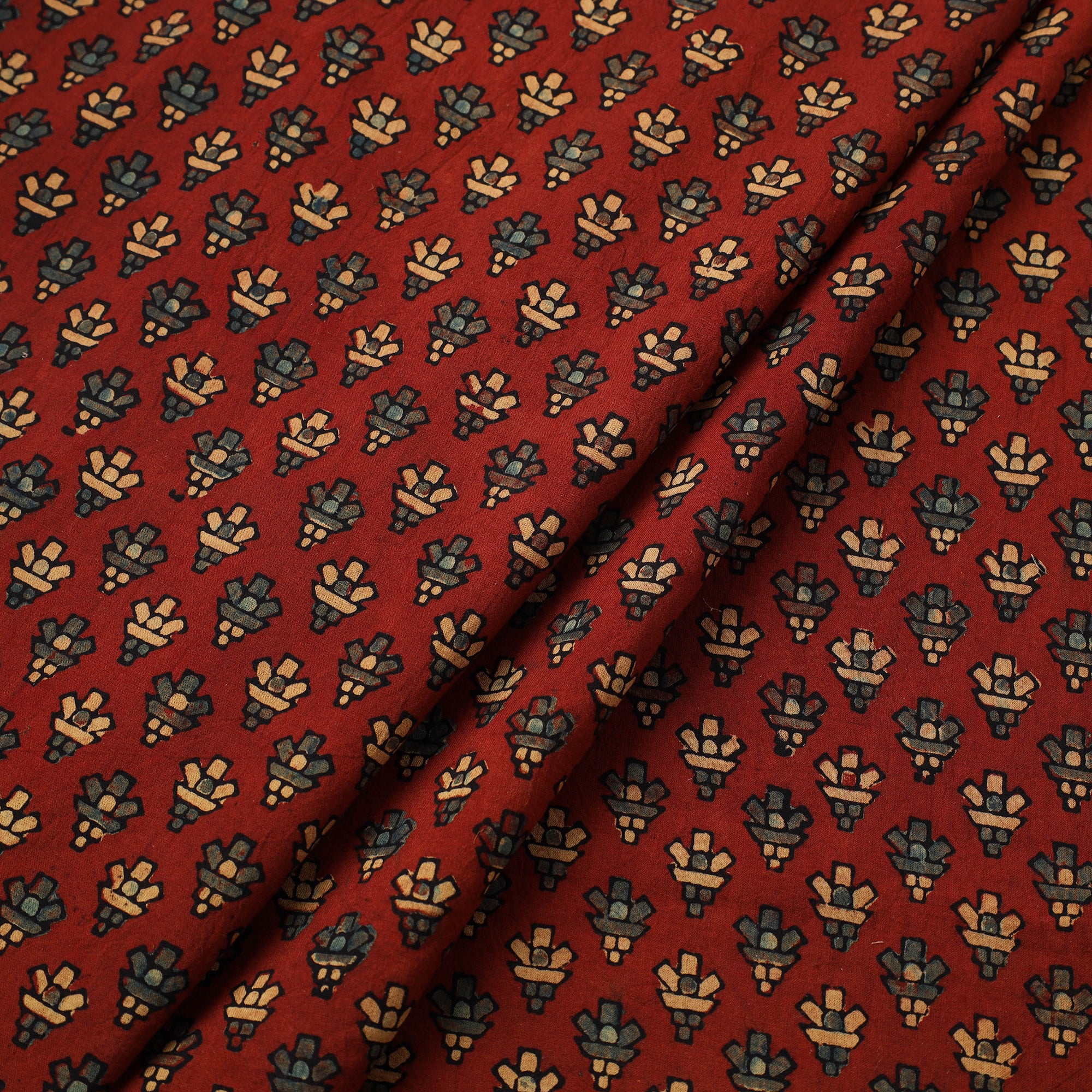 Red Block printed cotton ajrakh fabric, meticulously crafted by expert artisans in Gujarat’s Kutch region. Made using natural dyes, this eco-friendly fabric preserves a 4,500-year-old tradition of resist block printing. This exquisite fabric is perfect for custom outfits, upholstery, and creative projects, seamlessly blending cultural heritage with sustainability.