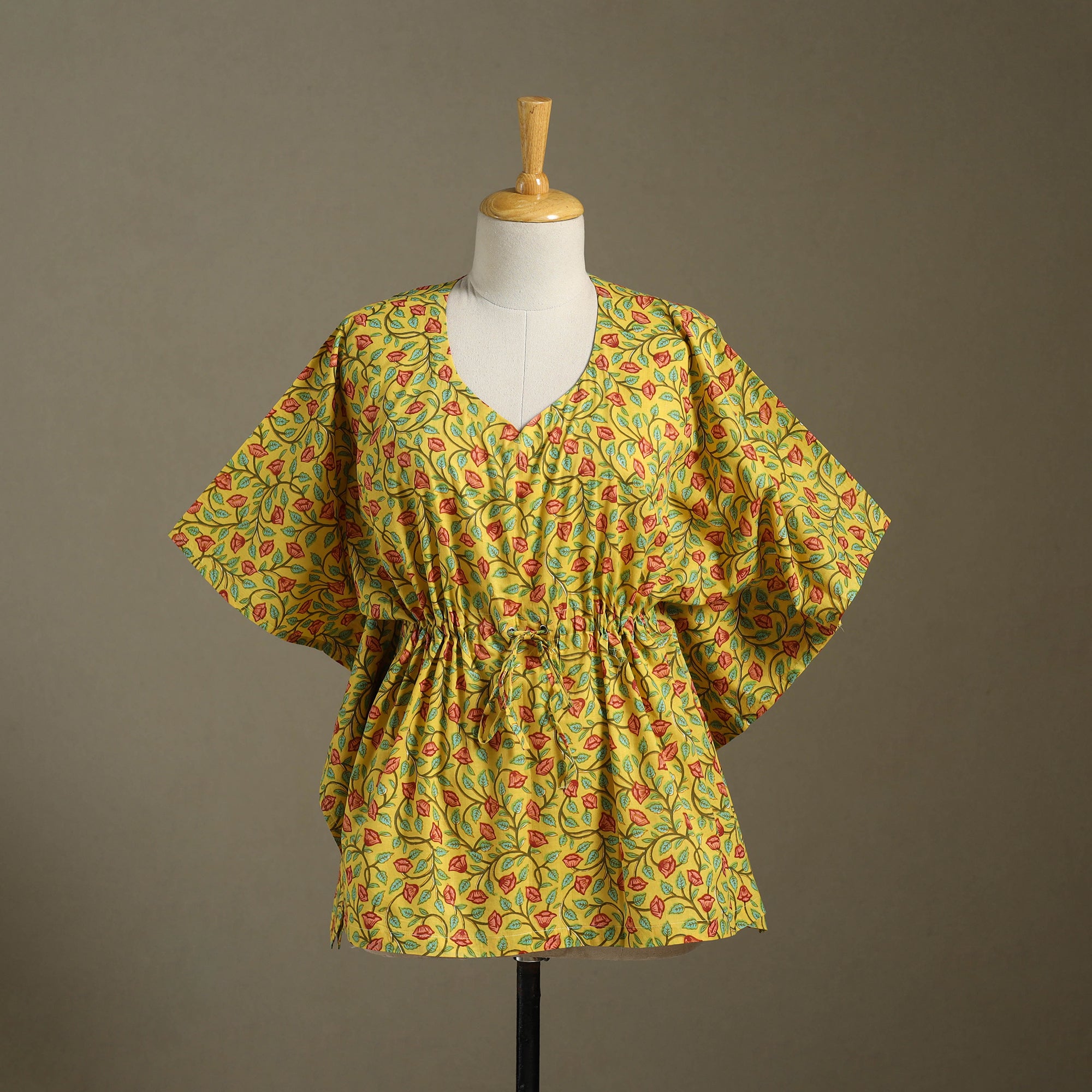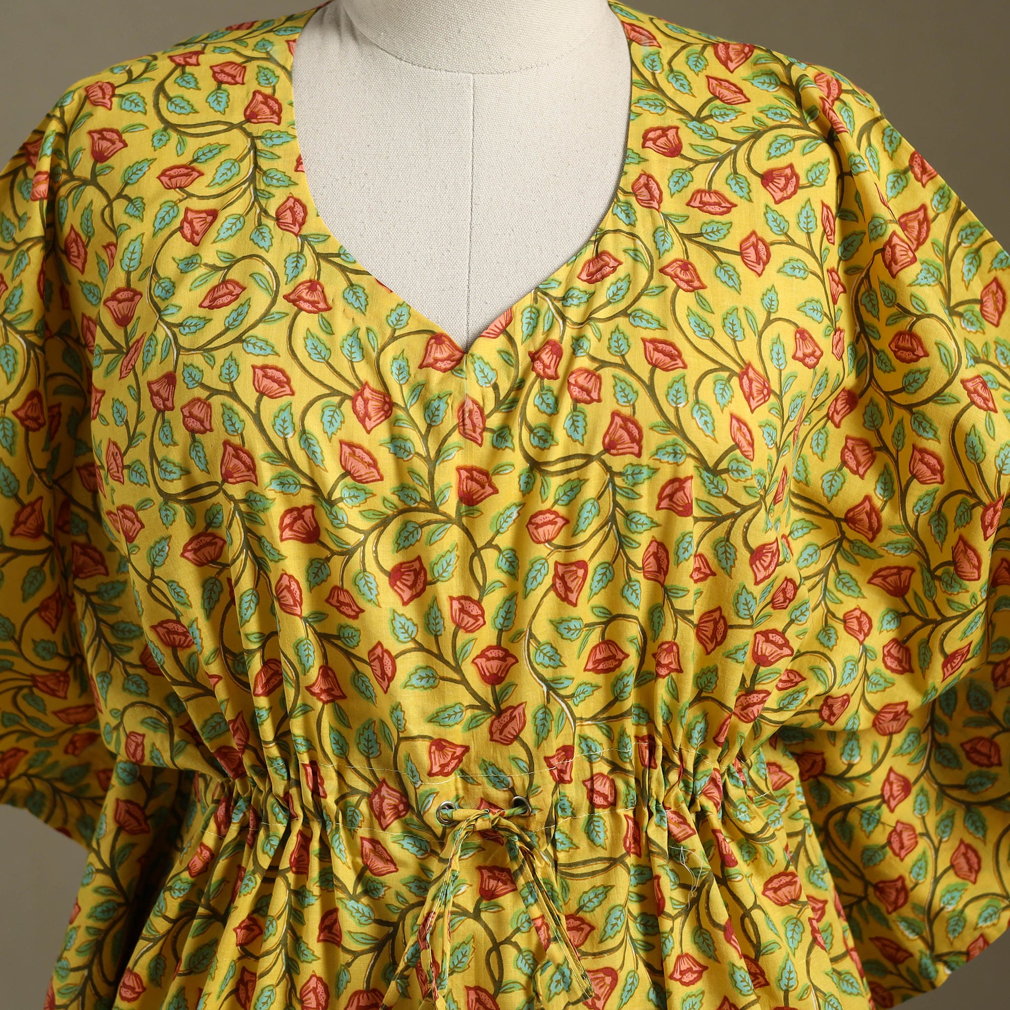 Yellow - Sanganeri Block Print Cotton Kaftan (Short) 11