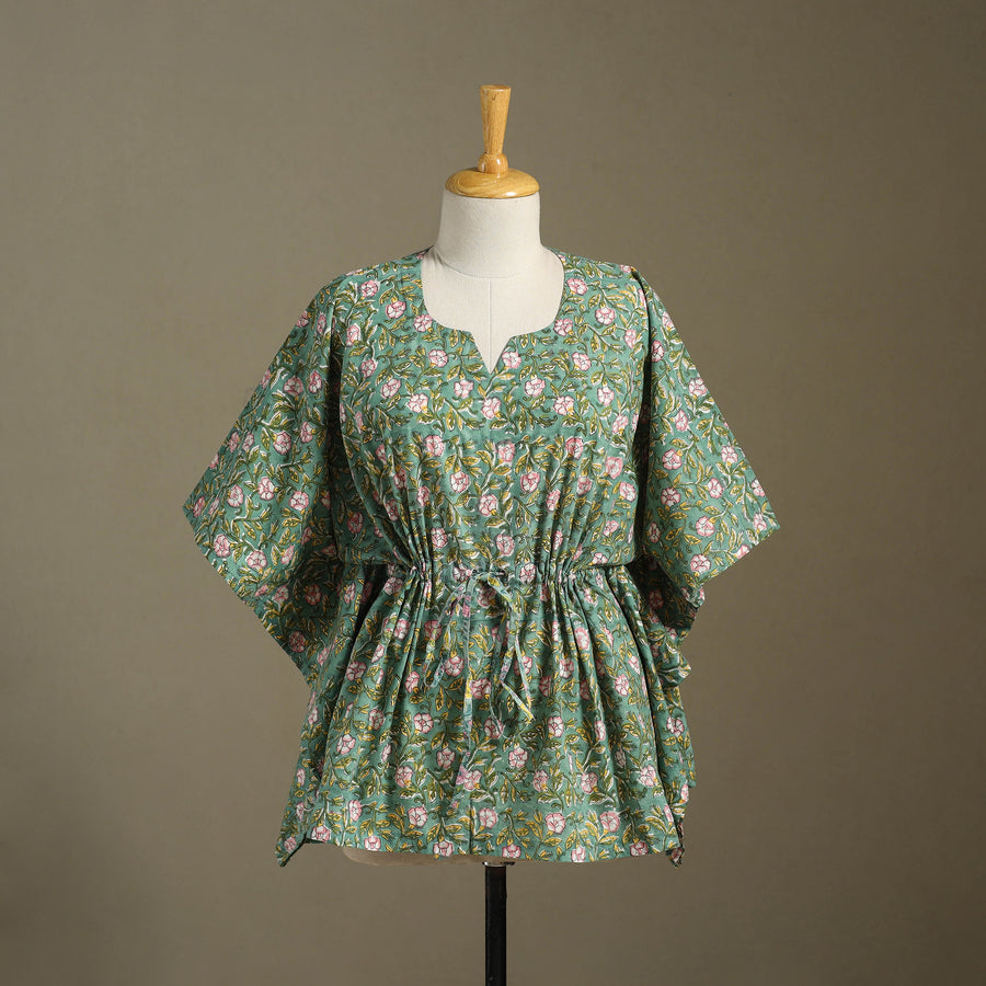 Green - Sanganeri Block Print Cotton Kaftan (Short) 14