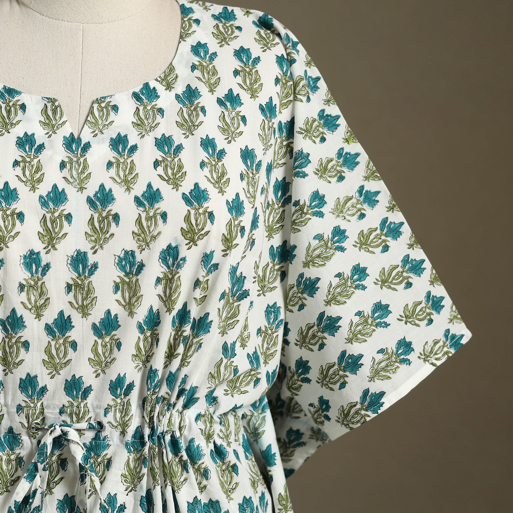 White - Sanganeri Block Print Cotton Kaftan (Short) 15