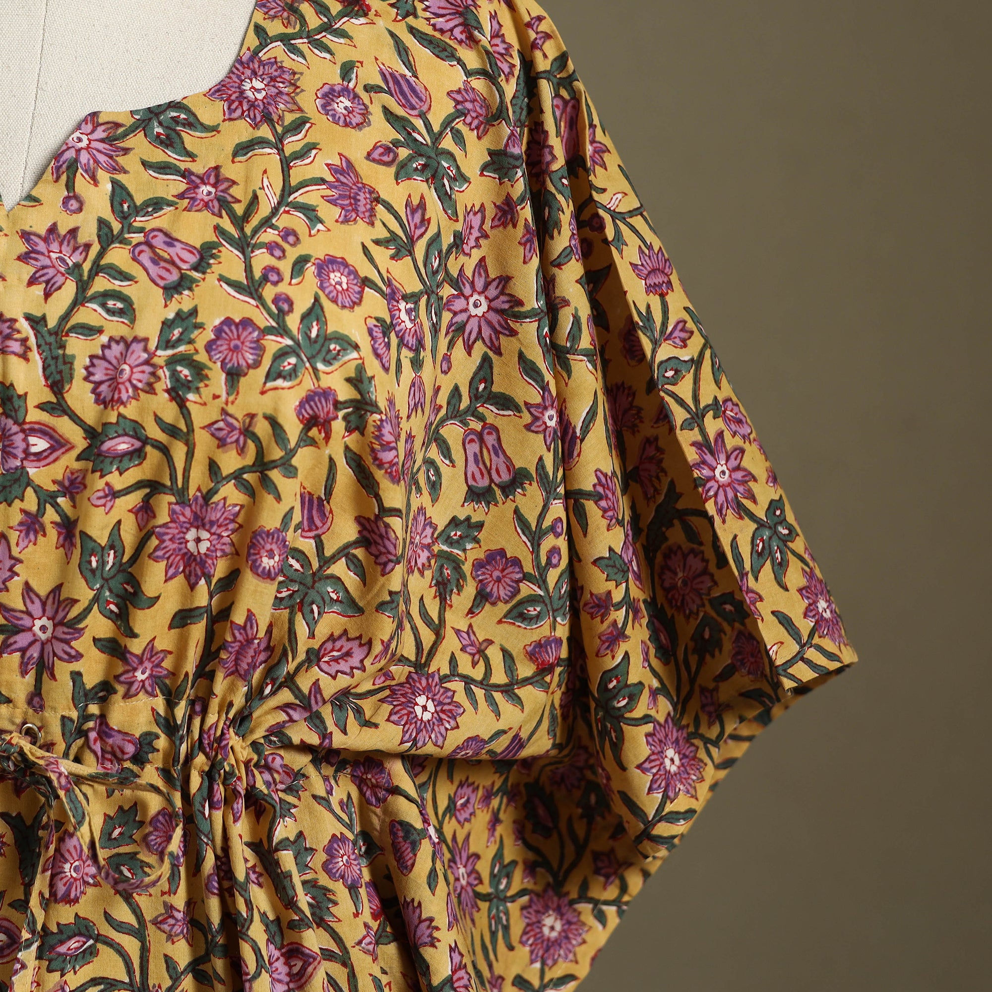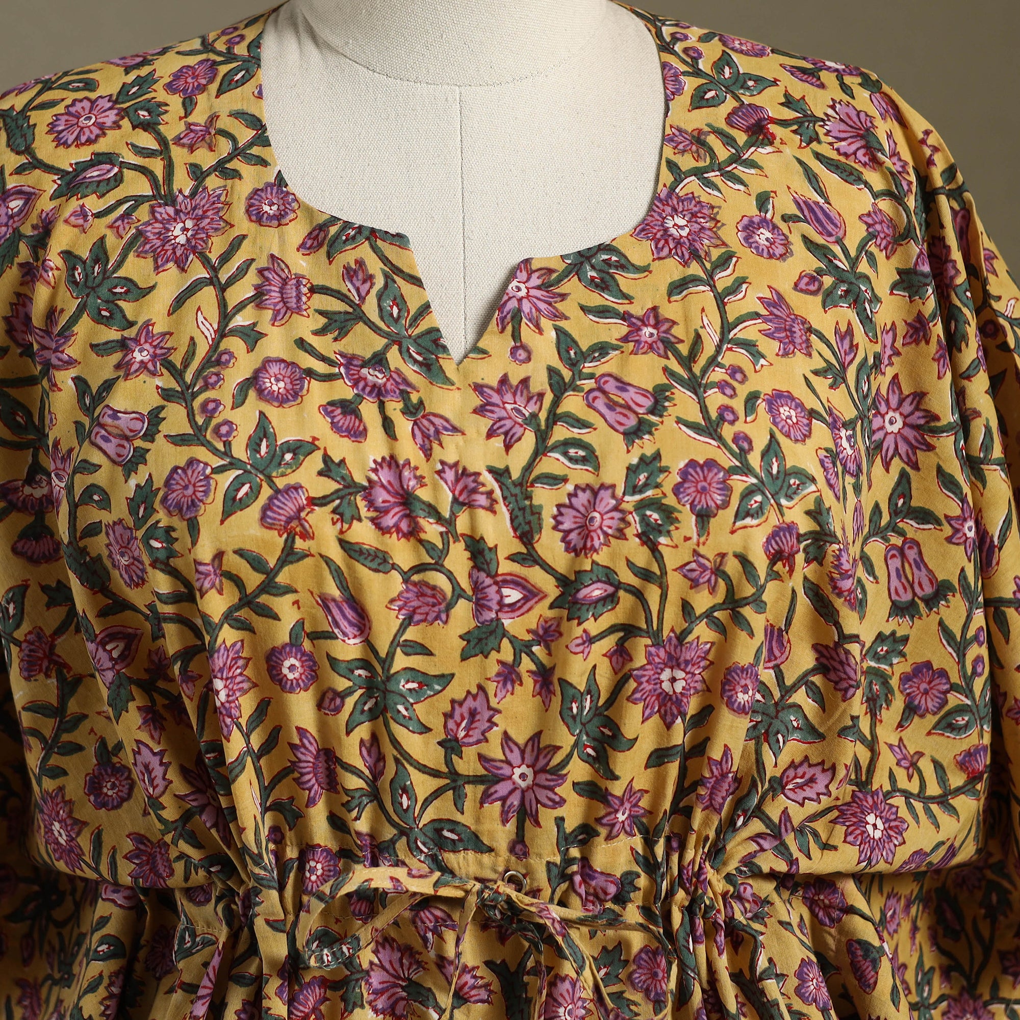 Yellow - Sanganeri Block Print Cotton Kaftan (Short) 25