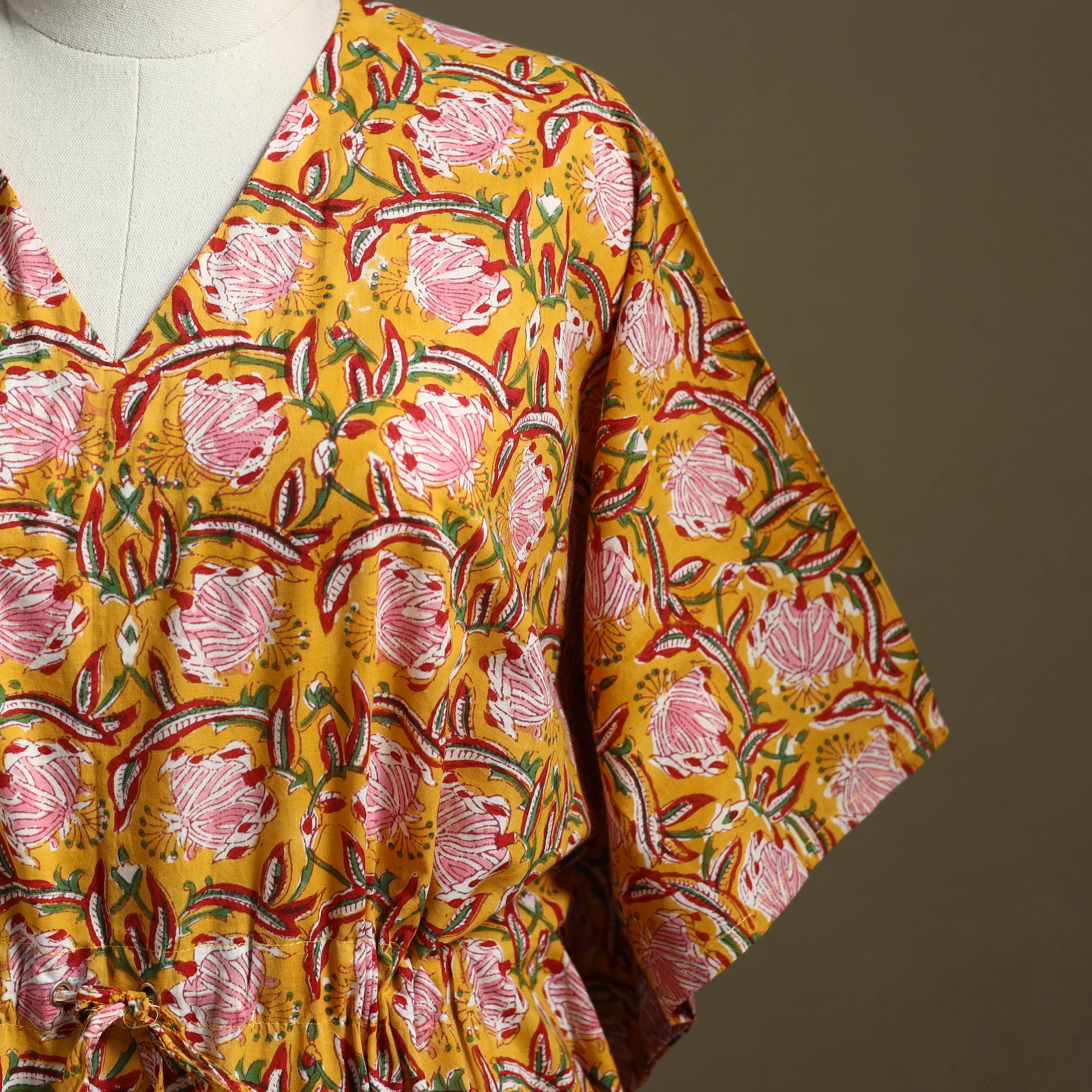 Yellow - Sanganeri Block Print Cotton Kaftan (Short) 44