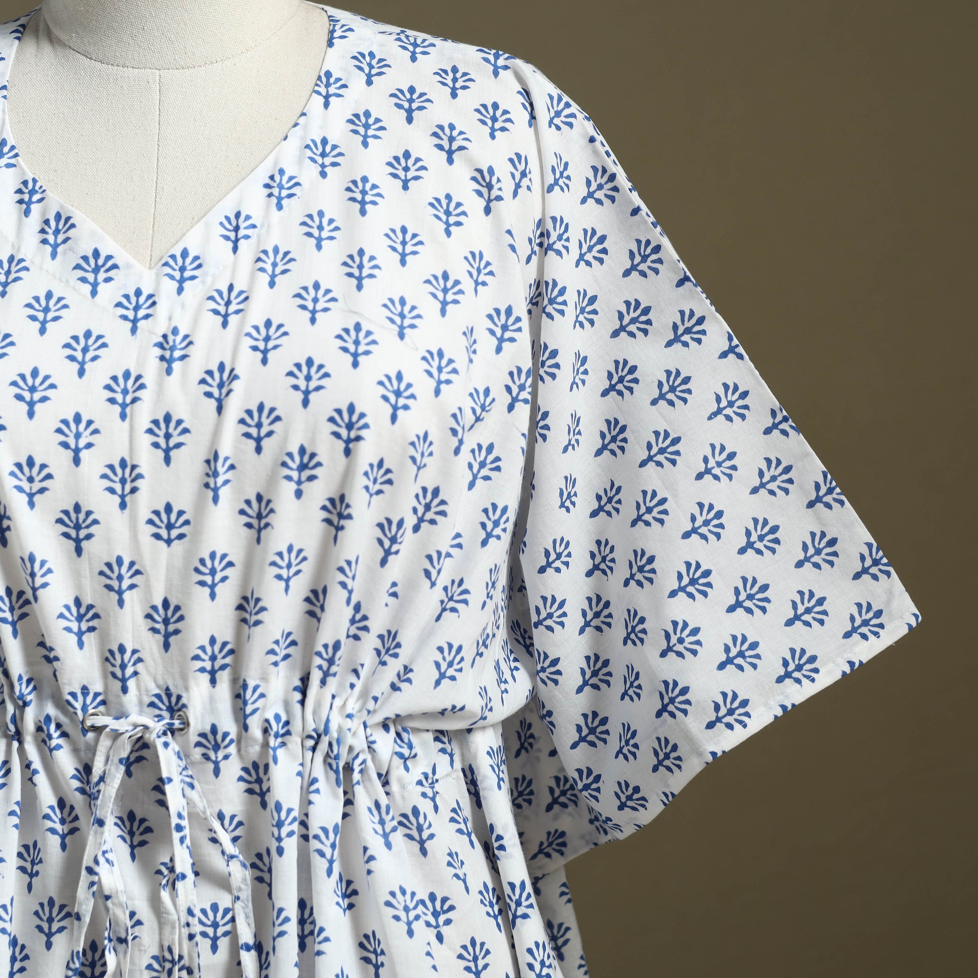 White - Sanganeri Block Print Cotton Kaftan (Short) 45