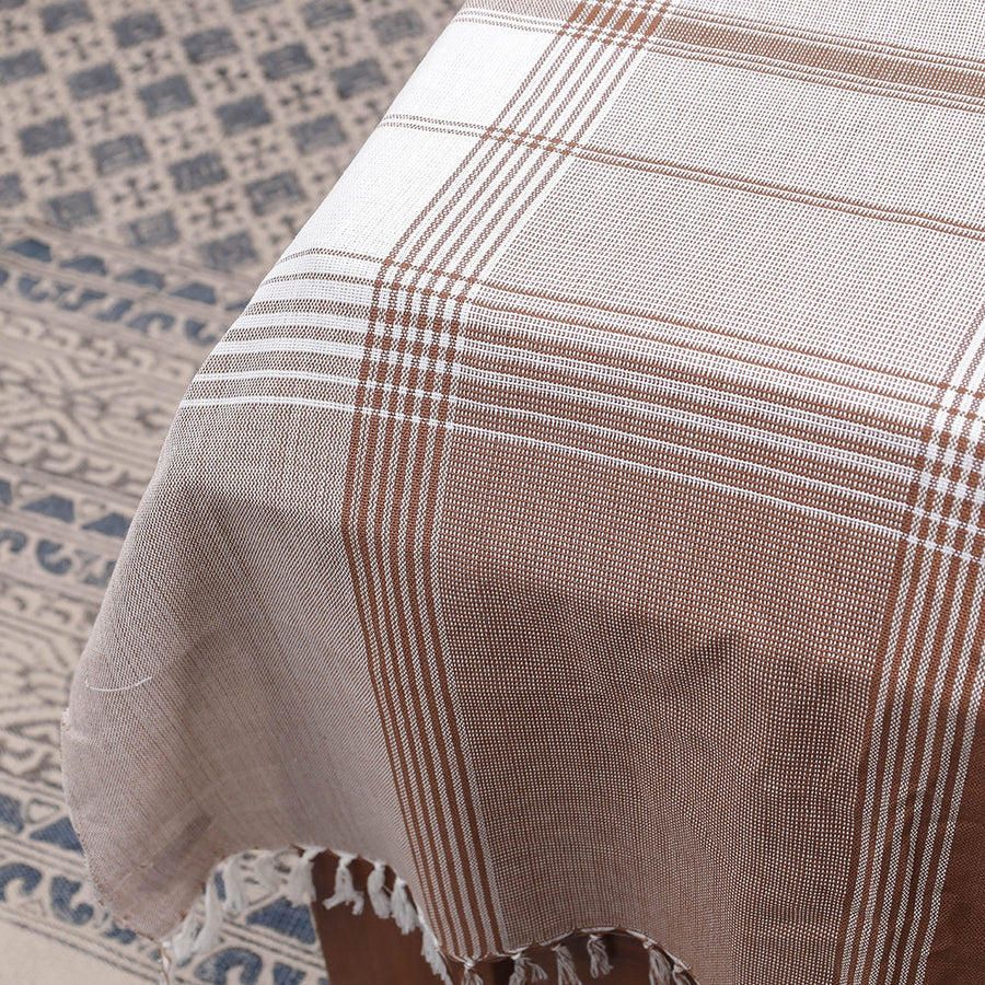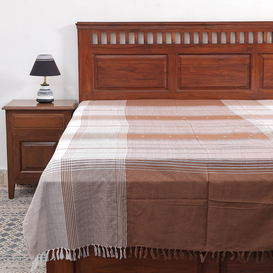 Kutch weaving handloom cotton single bed-cover with tassels, made by the master artisans in Kutch region of Gujarat. The Bed-cover is woven with traditional Kutch motifs. Soft textured.