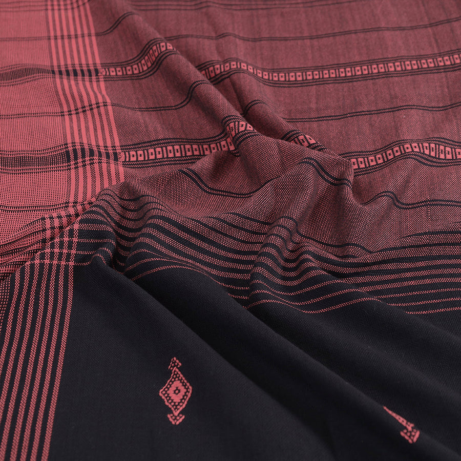 The traditional Kutch weaving is a 600-year-old tradition. It is done by an extra-weft weaving technique, where a weft yarn is used in the warp of the loom.