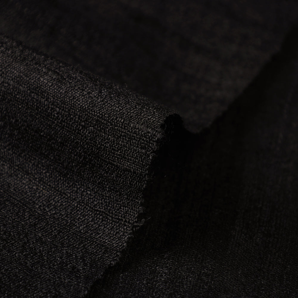 Finest black handwoven pure tussar x ghicha silk fabric from Vidarbha, Maharashtra. Tussar silk is known for its unique texture, sheen of silk and feel of cotton. A perfect blend of both worlds completely suitable for all weathers. Exquisite collection of pure handwoven tussar silk fabrics that showcases beautifully handwoven textures.
