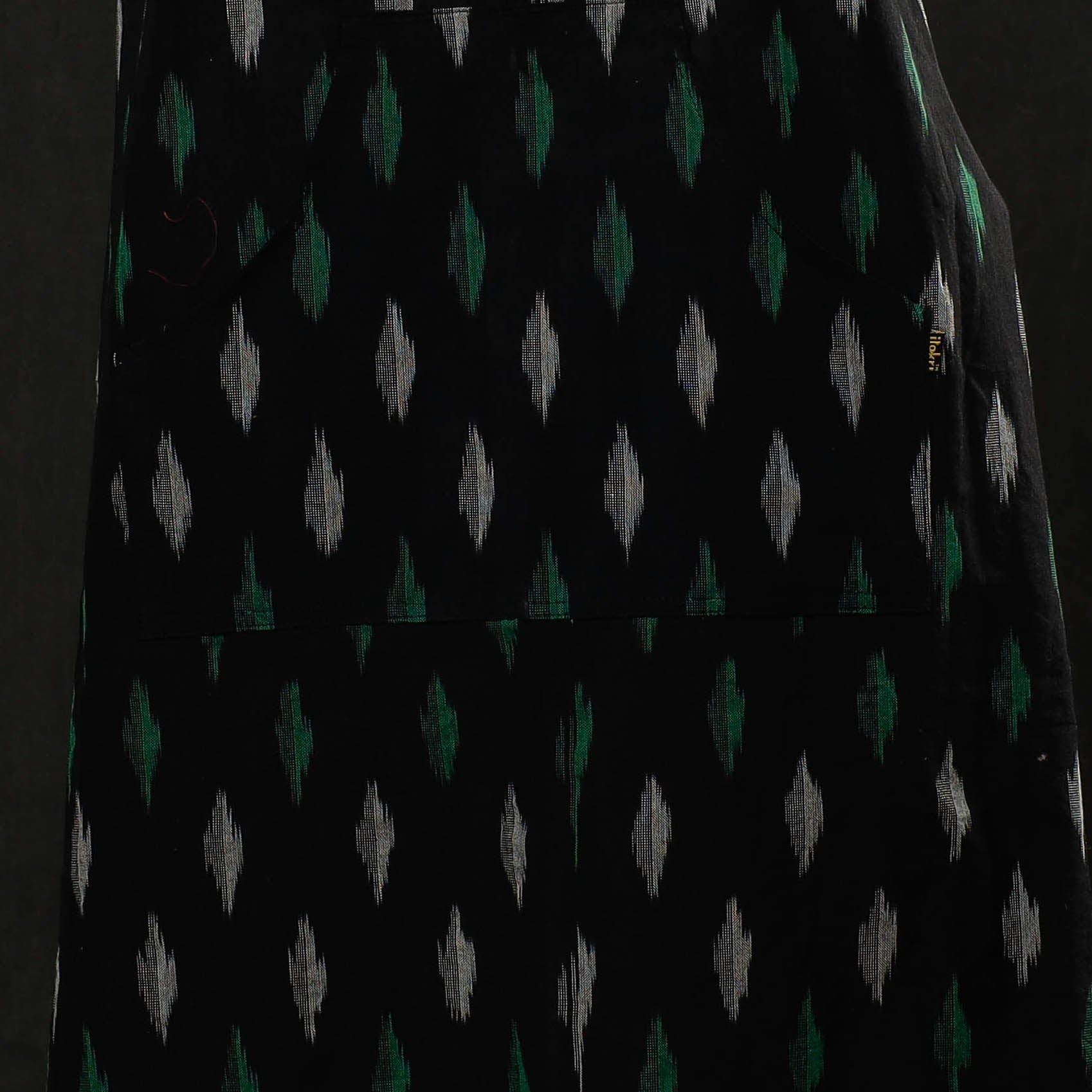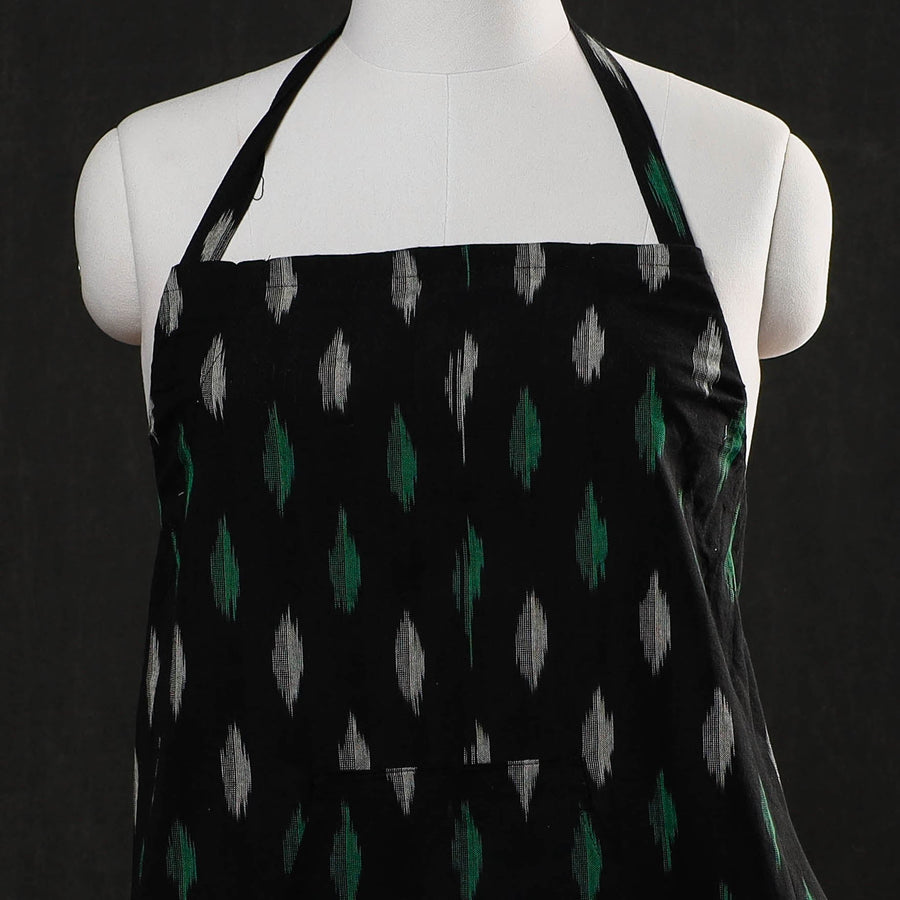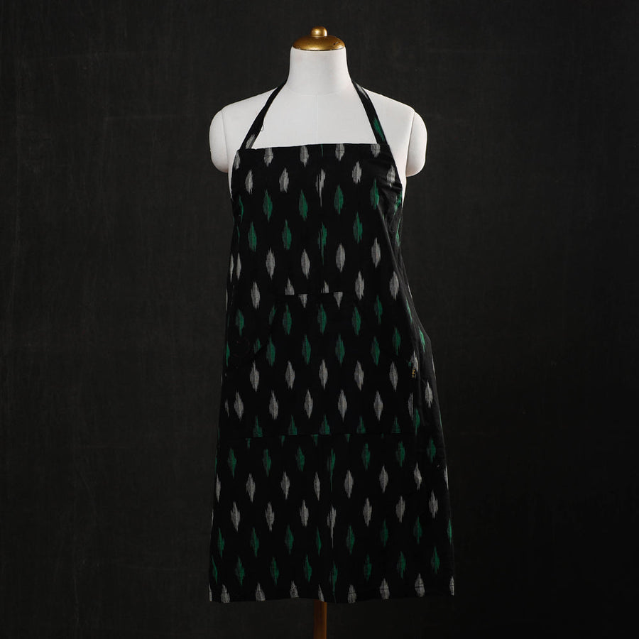 Between oil splatters, flour-covered counters, and food flying from the mixer, it's no secret that cooking can get messy. This black pochampally ikat cotton apron with pocket for easy-access storage is a must-have kitchen essential. The gorgeous prints on it will make you look stylish when you cook delicious food. Ikat (Ikkat) is a dyeing technique used to pattern textiles that employs a resist dyeing process similar to tie-dye on either the warp or weft fibers prior to dyeing.